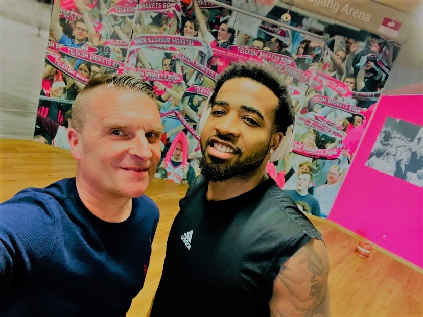 Miles Schmidt-Scheuber meeting Marcus Keene in Bonn before game 1 of the Basketball Champions League quaterfinals