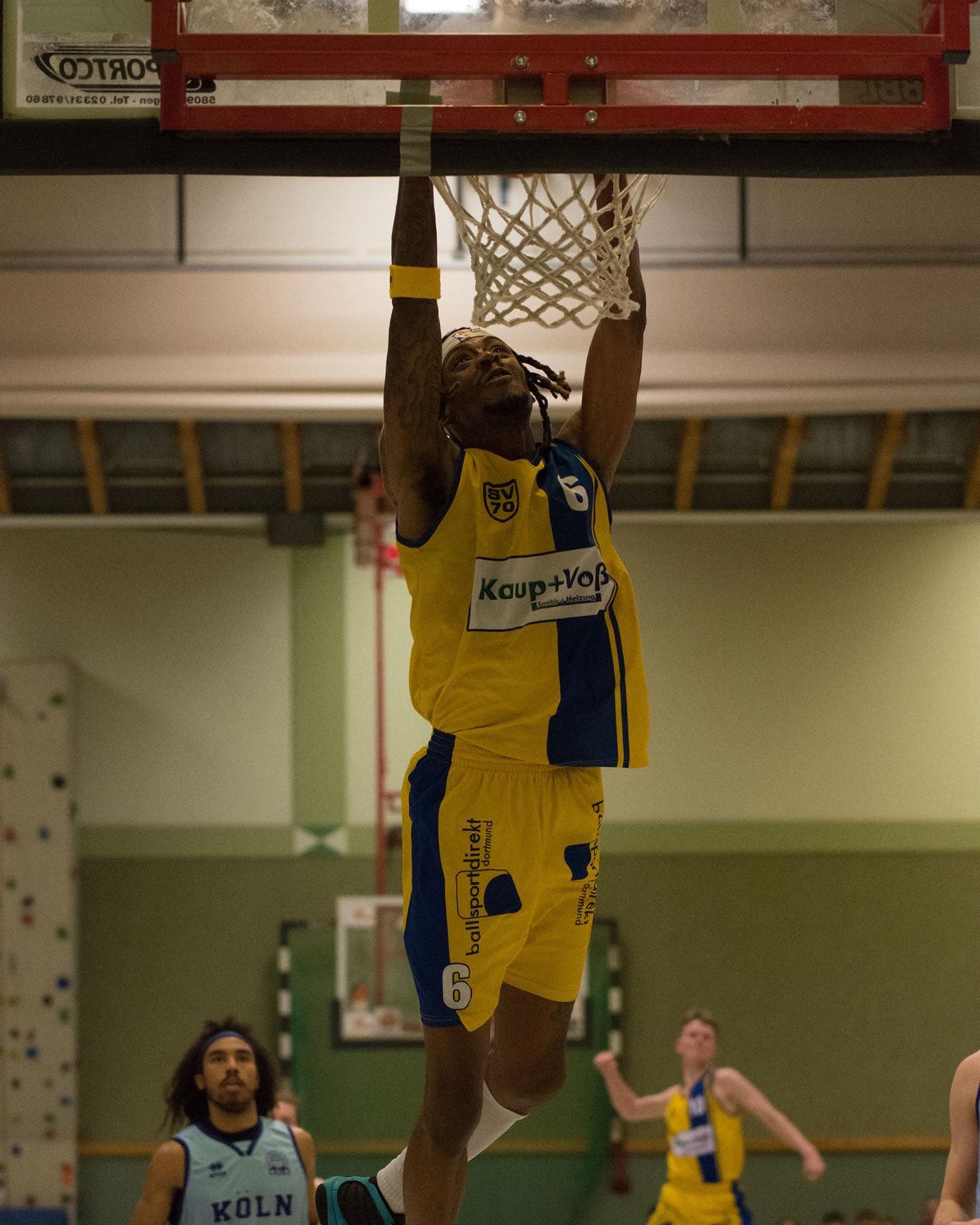 When you have interviewed as many American Regionalliga players like I have over the years, there is one thing that always stands out and that is their overwhelming self confidence in their abilities. I mean what is wrong with being very sure in one’s own abilities. If you can back it up why not? Scoring 50 + points is no easy task to do at any level. I mean every now and then a guy will blast off to another galaxy and hit for 100 points like Jonathan Braeger did last season with Regionalliga team Baskets Vilsbiburg. But let’s stick to the 50 points something that is also super rare to do. In the German Regionalliga, it is done every now and then, but how often is that touch of Kevin Love involved in the stat line. A player has to be super aggressive to score 50 + points, but how does one describe that aggressiveness when at the same time he hauls down 25 rebounds? When I read the stat line recently, I was amazed, but then again no so much amazed as I read the master of disaster that was involved for the masterpiece was Ricardo Artis II (198-F/G-1993, college: Wiley). I mean he had been dominating the Regionalliga all season long. Coming into the massive playoff game against Koln DTV he had hauled down 10 rebounds or more 22 times and earlier in the season had hit the same team for 21 rebounds. That was a good omen and after 43 minutes he had led his team to a big 114-100 OT win with 51 points and 25 rebounds. Even if he had 21 rebounds in the first game, he didn’t go into this game more motivated. ‘I always have a motivation to show the world what I can do every time I step on that court. I’m a high level caliber player, who should be playing nothing less than BBL and Pro A basketball here in Germany. Last time we spoke, I told you I would try 30 rebounds. I was 5 rebounds off so I apologize to you for that’, joked Ricardo Artis II. Sometimes guys know right away if it’s going to be a great night. Ex easyCredit BBL player Valentin Blass who strapped on the jersey 14 times for the Telekom Baskets Bonn had to endure Artis’s prediction right off the bat. ‘After my first point, I went up to #38 Blass for Deutz and I told him I was going for 50. He told me ‘good luck.’ That’s the best luck someone has ever granted me. Haha. Dankeschoen #38 Blass.’, smiled Ricardo Artis II who played a season at Wiley College (NAIA).