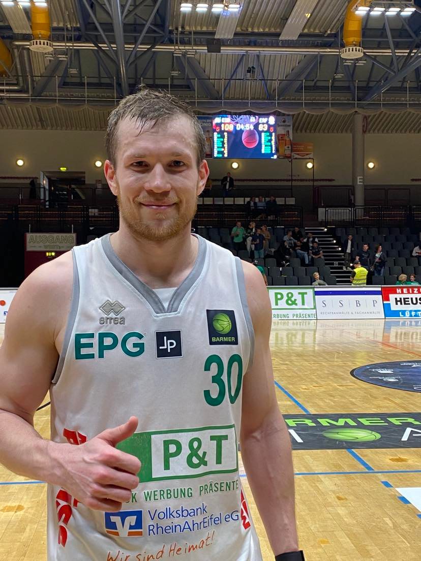 In the fourth quarter the EPG Baskets Koblenz were able to shift up one more gear as the CATL Basketball Lowen were unable to withstand their execution rate and on offense failed to execute as well as in the previous quarters. Koblenz began well as Marvin Heckel controlled the offense and got 2 easy lay in’s and Brian Butler also scored inside for the 88-73 advantage. Edi was back in the game and responded instantly with 4 points to cut Koblenz’s lead to 88-77. Koblenz then shifted into a top gear going on a brutal 9-0 run to lead comfortably 97-77. In the run it was Heckel who supplied a jumper, Moore a lay in and Friederici 4 points including a sweet dunk from the baseline. Friederici would add another crushing dunk a few minutes later. ‘I can’t remember ever making 2 dunks like that so close together in time. When I saw Sperber having his man in front, I had a clear path to the rim. A play like that gives the team momentum’, warned Leon Friederici Heckel had been instrumental in the fourth first scoring 3 times and then dishing out assist after assist in the run. ‘He had 5-7 plays in a row where he made the absolute right solutions. He made our defense better as well. He took what could have been a 6-7 point lead to a 12-13 point lead’, said Tobias Hosper. ‘When Heckel isn’t on the court, something is missing in our game. He knows our team so well. He is our most important player’, stressed Leon Friederici Koblenz had the momentum and didn’t let down, but finished the game strong going on a 11-4 run to close out the game. Moore added a trey, Butler scored twice inside and Friederici added another hard dunk. ‘Key in the fourth was playing fast and slowing their game down. We took away their transition game and they were tired at the end’, expressed Leon Friederici ‘We had fatigue. It was frustrating to see us giving our all and they were still hitting everything’, stated Tyseem Lyles. The EPG Baskets Koblenz were led by Leon Friederici with 25 points. Niclas Sperber added 18 points and Marvin Heckel had 17 points and 11 assists while the CATL Basketball Lowen were led by Dominykas Pleta with 25 points. Tyseem Lyles added 19 points and Guy Edi 13 points. The EPG Baskets Koblenz shot 55% from the field and 35% from outside and had 33 rebounds and 10 turnovers while the CATL Basketball Lowen shot 48% from the field and 34% from outside and had 31 rebounds and 19 turnovers.