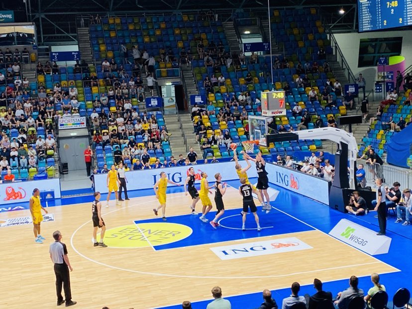 Both teams began the first quarter finding a smooth offensive rhythm as defense took a back seat. Young Rasta Dragon Killian Brockhof got on fire rapidly getting 7 points showing his inside-out abilities with a turn-around shot, lay in and trey while Alba Berlin got potent support from NBBL MVP Rikus Schulte with 5 points. Alba Berlin had no problems challenging the bigs Grunloh and Brockhof as 2022 NBBL champ Linus Ruff dominated in the paint scoring 3 baskets. But the reigning champion couldn’t get away as the Young Rasta Dragons heart and soul and captain Noah Jannen took over scoring 8 vital points including 2 three’s to give the Young Rasta Dragons the 19-18 advantage. The Young Rasta Dragons had problems takin g care of the ball, but Alba Berlin couldn’t take advantage of it in the scoring department. German Paul Bahn and Brockhof traded baskets and after 10 minutes Alba Berlin had the slim 22-21 advantage. ‘Both teams came out scoring well. No team was able to show their defensive qualities. It took some time for both teams to get rid of their rust’, stated Elias Rapieque. Alba Berlin shot 47% from the field and 40% from outside and had 7 rebounds and 5 turnovers while the Young Rasta Dragons shot 50% from the field and 38% from outside and had 9 rebounds and 8 turnovers.