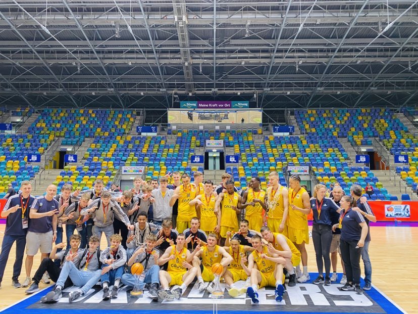 The first 5 minutes of the fourth quarter must of felt like a nightmare for Young Rasta Dragons head coach Hendrik Gruhn as his teams couldn’t score, but did it feel worse for Alba Berlin head coach Vladimir Bogojevic as his team could only muster 6 points and not more and decide the final earlier? Alba Berlin made 10 consecutive stops, but only got free throws form Entezami and Machowski while Rapieque made a lay in for the 64-56 advantage. The Young Rasta Dragons finally got on the score board at the 5,09 minute mark as Killian Brockhoff made a trey to cut Alba Berlin’s lead to 64-61. Ruff and Grunloh then traded dunks and Schulte made an old school running hook shot as Alba Berlin still led 68-63. Rapieque then stole the ball from Jannen and made a hard 2 handed dunk as Alba Berlin led 70-63 and were threatening to decide the game at the 3,53 minute mark. But as usual the Young Rasta Dragons had an answer and their heart and soul Noah Jannen came through again with a clutch three pointer and three three pointers and suddenly Alba Berlin led only 70-69. With no one noticing the Young Rasta Dragons had escaped on a 9-0 run as Brockhoff added a trey and Alba Berlin trailed 72-70 with 1,29 minutes to play. But Alba Berlin was still wide awake on defense as Rapieque made a key steal and dunk to tie the game 72-72 with 1,01 to play. Alba Berlin made the next punch as Schulte dropped a trey for the 75-72 lead with 23 seconds to play. The Young Rasta Dragons surprised some instead of going for the quick two getting another clutch three by Jannen to dead lock the contest at 75-75 with 17 seconds to play. ‘I always thought we could get away but they always had an answer. But Vechta never gave up. We had to play more physical. They were really giving us problems’, said Ellias Rapieque. ‘We came back played zone and gave them problems. Alba Lives from their energy and we just continued to fight until the end’, said Kaya Bayram. Alba Berlin had the last possession and Nils Machowski became the hero making a breathtaking off balance shot game winner for the title. ‘I looked over at coach, but he didn’t even look at me. I didn’t want to dribble much. I practice that shot a lot and like taking it’, smiled Nils Machowski. ‘It was a tough shot, but I had a good feeling it would go in’, stated Rikus Schulte. ‘I have to be honest at first look, I didn’t think it would go in. But he can make those shots. He practices them all the time’, smiled Ellias Rapieque. Alba Berlin was led by Rikus Schulte with 20 points. Nils Machowski added 17 points and Linus Ruff had 12 points while the Young Rasta Dragons were led by Noah Jannen with 25 points while Killian Brockhoff added 19 points. Alba Berlin shot 39% from the field and 33% from outside and had 38 rebounds and 19 turnovers while the Young Rasta Dragons shot 39% form the field and 38% from outside and had 45 rebounds and 27 turnovers.