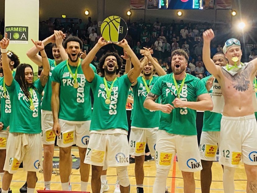 Grunloh then added a tip in dunk that looked so easy. ‘This kid has incredible athleticism. He is so versatile and flexible something very rare for his age. He is so aggressive at both ends of the court. He is a great player. I love to watch him’, stated Thomas Klein. Grunloh finished with 9/7 stats and is appreciated by all. ‘He is an amazing player. He is a great shot blocker. He will make up for your mistake with his defense and presence in the zone. It was a pleasure playing with him’, said JJ Culver. With a few minutes left, it was apparent that Rasta Vechta wouldn’t get over the hump on this night. It was time to get some special love for his team by the creator. ‘My biggest joy this season was how the team always stuck together no matter what especially through the immense pressure. I also liked how the top players accepted their roles and it was all about team and not self’, warned Thomas Klein. Down the stretch the guests got baskets from Jannen and German Killian Brockhoff while the Pro B champion closed out the win with a transition three pointer by Yasin Turan and lay in by Leo Saffer. ‘We shut the door on them well. We enjoyed the atmosphere. It was the first title for many guys’, stressed Brian Butler. ‘We gave our best until the end. They stayed mentally strong and always applied pressure on us. They were prepared very well and always had an answer’, stressed JJ Culver. The EPG Baskets Koblenz were led by Alani Moore with 20 points. Moses Poelking added 16 points and Dominque Johnson 13 points while Rasta Vechta 2 were led by Leon Okpara with 15 points. The EPG Baskets Koblenz shot 53% from the field and 42% form outside and had 38 rebounds and 13 turnovers while Rasta Vechta 2 shot 36% from the field and 28% form outside and had 30 rebounds and 13 turnovers.