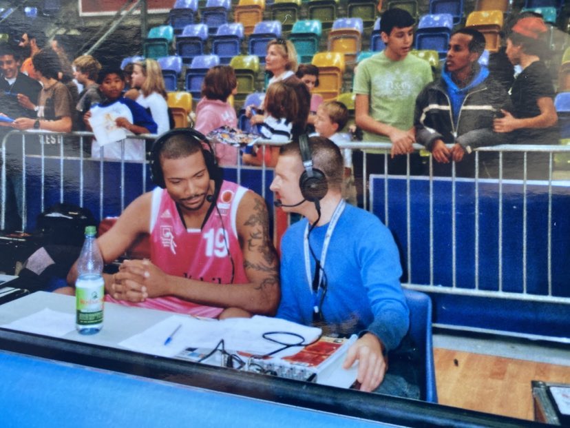 Miles Schmidt-Scheuber interviewing Ken Johnson after he returned back to Frankfurt with the Telekom Baskets Bonn winning 81-66 as he chipped in with 6 points and 4 rebounds