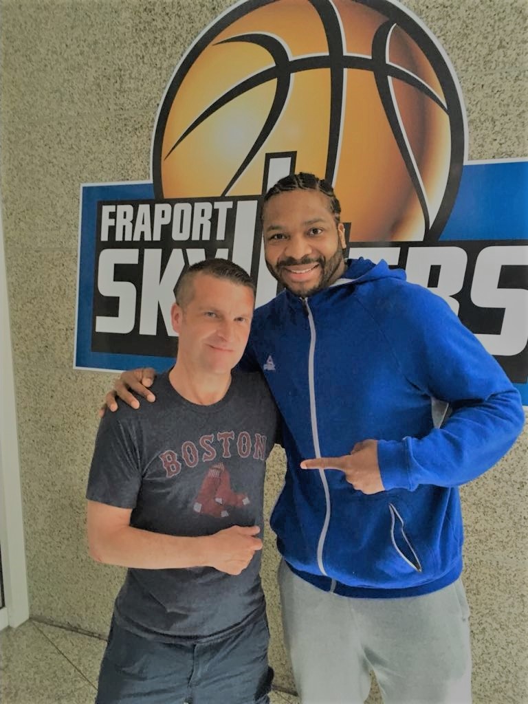 In 2018 at halftime of a Pro B game between the Fraport Skyliners Juniors and TG s.Oliver Wurzburg on a BBL game free Saturday night, one could observe the usual suspects of the BBL team hanging around as Finish national player Shawn Huff was chasing his kids around, Mike Morrison was calm and collected in the stands raving about his son who was strutting his early youth basketball ability on the side with another child while Quantez Robertson (188-SG-1984, college: Auburn, agency: Interperformances) was chilling next to Morrison playing a basketball game on his phone and was in control in his mindset not only what was happening on his phone, but also seemed to know exactly what else was happening around him just like when he is being his freak athlete self on the basketball court. Suddenly Mr Canada Philip Scrubb popped up scaring the hell out of Morrison who couldn’t believe that he had missed the whole first half. Scrubb along with Quantez Robertson or ‘Tez’ as everyone calls him except for maybe his mom belong to the most faithful Fraport Skyliners who diligently watch the farm team almost every weekend in their free time. For Scrubb, it’s not a burden, but something very self evident. ‘I just like watching basketball and I think that it is important to support the guys. I’m living on my own so usually I don’t have anything else to do’, stressed Philip Scrubb. Just like Scrubb, Tez Robertson is a basketball junkie and for him, if he wasn’t at the gym watching the farm team, he would be in his apartment playing games on his phone, so why not be at a game supporting the guys. Scrubb and Robertson have only been teammates for two seasons now, but something definitely links their basketball existence in Frankfurt especially when the word ‘greatest’ is mentioned. For many who follow basketball in Canada, Scrubb is seen as being the greatest Canadian college player of all-time, while in basketball Frankfurt Quantez Robertson is simply a living legend the way Ricky Paulding was in Oldenburg and Tez was working on his legacy as a Skyliner as developing that label greatest was in progress. Robertson is a Fraport Skyliner lifer who would never play for another professional team and continued to carve his legacy of becoming one of the greatest Fraport Skyliners of all-time.