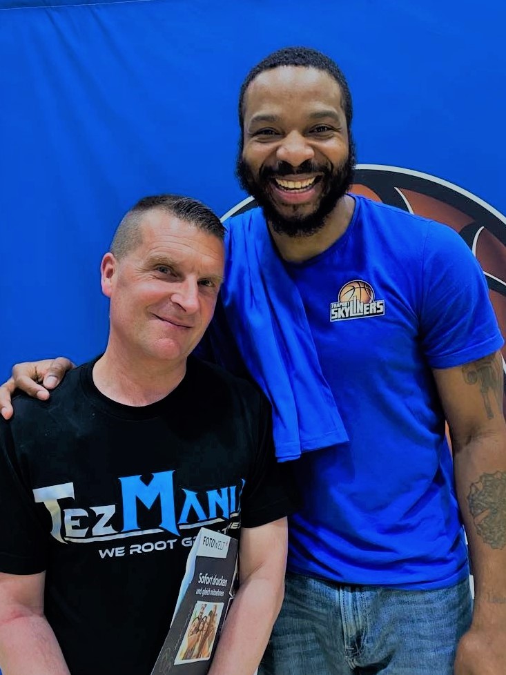 One thing I have always loved talking about with Tez is other basketball topics besides the Fraport Skyliners. In the last years, we discussed topics like Lebron James, Charles Barkley, The Euro 2022, Autograph collecting, Derrick Allen, Rickey Paulding, summer vacation, making it into an Argentine newspaper with me, Easter and Reese’s Peanut Butter Cups, PJ Tucker and of course Tom Brady. In summer 2023, I had to ask him about Team USA and the 2023 World Cup. I mean I was almost at a loss of words when I saw this 12 man roster of Paolo Banchero, Mikal Bridges, Jalen Brunson, Anthony Edwards, Tyrese Haliburton, Josh Hart, Brandon Ingram Jaren Jackson Jr., Cam Johnson, Walker Kessler, Bobby Portis and Austin Reaves. My first thought was where are the superstars like Kevin Durant, Jayson Tatum, Kyrie Irving or Anthony Davis? ‘I’m not going to stay I was scared when I first read the names. I mean they are all good players. They all can score and play defense’, commented Quantez Robertson. Why aren’t stars playing? Are the priorities different in 2023 than years ago?. ‘I think that a lot of the super stars have played in the Olympics and World cup before. I think that the basketball federation is trying to give young and up coming players the chance to represent their country’, expressed Quantez Robertson. I personally don’t follow the NBA much, but of course have heard of all of them and even had dealings with some. I never lost interest for autograph collecting as my first real NBA autograph was Moses Malone during the 1981 NBA finals in Boston. Just a few months ago when I was in my home town Boston for 10 days, I was able to get Mikal Bridges, Josh Hart and Cam Johnson’s autographs while guys like Jalen Brunson and Brandon Ingram couldn’t be bothered to stop and sign. Tez sees guys like Anthony Edwards, Jalen Brunson and Brandon Ingram as being the go to guys and leaders as they score at a high clip and sees every player as being a surprise as each player brings something different to the table, but can USA win the Gold medal? ‘I think that the advantage that Team USA has is that the Euro teams don’t know much about this team. They have allstars, but no superstars. I honestly think that Team USA can win the Gold medal’, warned Quantez Robertson. How will Germany fair? ‘I think that Germany have a shot if they play well. You know that Gordie always has a game plan’, said Quantez Robertson. You know that the next Tez article will come after the 2023 World Cup results are in. I end our 20 minute talk with the question to which Team USA player is most like him. ‘Mikal Bridges is most like me. He doesn’t need any plays run for him to be effective’, warned Quantez Robertson. But I’ll take a Quantez Robertson over Mikal Bridges any day. There are simply too many sweet memories still dancing in my head with Tez and the Fraport Skyliners.