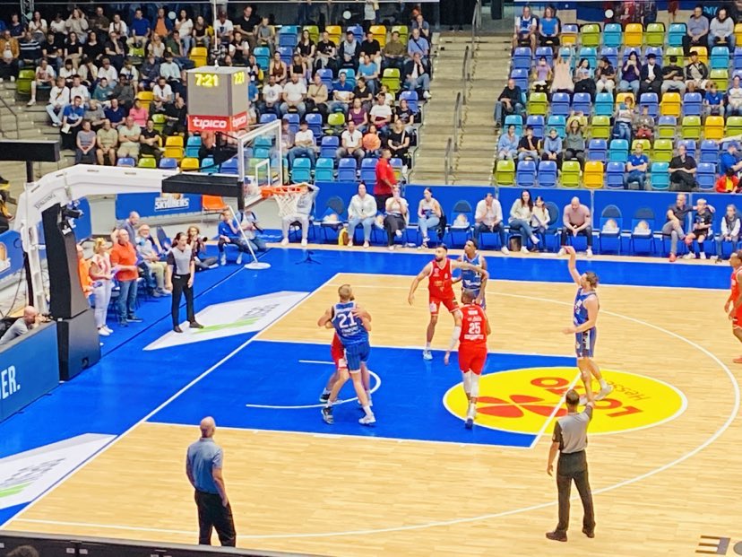 The game took a turn in the second quarter as the Fraport Skyliners were unable to keep their powerful scoring from the first quarter as they dipped down to 11 points while MBC continued to stay consistent on offense living off their guard play scoring 25 points. The guests totally upped their defensive intensity on ball and Frankfurt was unable to come to terms with that. Their lead started to dwindle. German Alvin Onyia made a nice runner for the 30-25 advantage, but MBC began to slowly crawl back and before anybody knew it, the score was dead locked at 32-32 as MBC got baskets from Jelks and Stove on the drive as Frankfurt´s 1-1 defense was too lax. It also didn´t help Frankfurt´s cause when they suffered their 5th foul at the 4,50 minute mark. MBC went on a lethal 16-7 run to lead 48-39 at the break. In the run of MBC, it was Diante Baldwin (180-PG-1994, college: UNCG) who had played in Germany back in the 2019-2020 season for Tuebingen scored 3 times, while they also mixed it up getting Breunig touches that led to a running hook shot and dunk. Frankfurt continued to get beat 1-1 and also had problems with transition defense. A good sign were the many extra passes by Frankfurt, but in a game with so much pressure, not always the best idea as they did get many turnovers because of that. “Our on ball pressure really helped us get the lead. Our athleticism and ability to disrupt plays and timing was important for us. Our up tempo play is one of our biggest strengths. That allowed us get easy baskets”, stated Johnathan Stove.