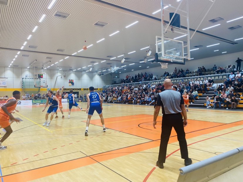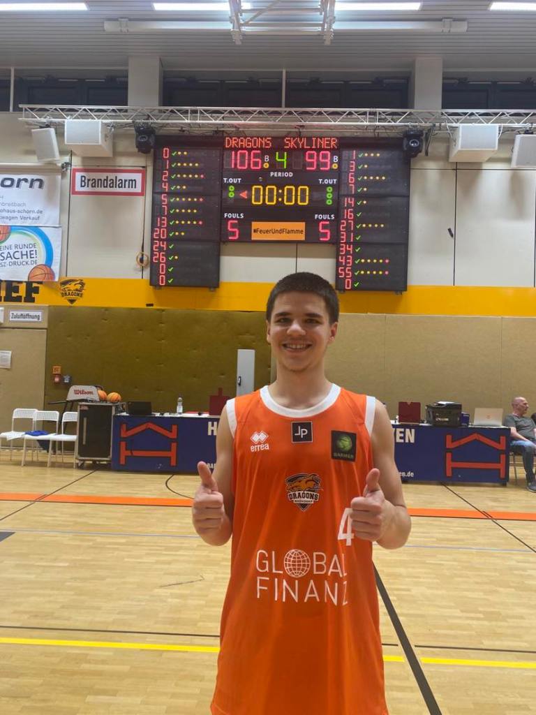 I can´t remember coming into the Dragon Dome as excited to start a season as I was before the game against the Fraport Skyliners Juniors. It is often that a Pro B team starts 2-0 with 2 massive road victories, but the Dragons Rhondorf did just that and have displayed early season success with beautiful team basketball and a roster that already has a very good chemistry. Granted they didn´t play their best basketball the whole time in both wins, but they played their best when it counted most. They returned back into their living room sprouting with enormous self confidence and had to battle the always young, but competitive Fraport Skyliners Juniors. They have had some real intense battles over the years and who could forget Kameron Taylor´s buzzer beater almost 6 years ago? This time Rhondorf met the 1-1 Frankfurt team who had won their first game at home over TSV Troester Breitengussbach, but had a very poor showing in Leitershofen amassing only 50 points. The Fraport Skyliners Juniors wanted to give a better showing than last weekend and the Dragons Rhondorf wanted to keep the momentum going and stay unbeaten. On a rather mild early Autumn day, 2 teams met and probably nobody could have predicted at tip off that the game would go an exciting 50 minutes, but it did as the Dragons Rhondorf prevailed winning a wild 106-99 game in double OT to go 3-0 while Frankfurt fell to 1-2. The Dragons Rhondorf allowed Frankfurt to hang around all night long, but in the second OT it was Marko Rosic that came up big to seal the win. “It was a tough game. We showed again how well we can close out games. We had too many leads where we allowed them to come back. We need to learn to build on the leads. I´m proud how we stuck together and played as a team in the last 10 minutes. Our biggest strength was our offense. We kept finding solutions and that makes us very difficult to defend”, warned Dragons Rhondorf guard Marko Rosic (174-PG-2005) The Fraport Skyliners Juniors came severely weakened into the game without Jordan Samare and captain Alvin Onyia who were playing in Munster at the same time with the Frankfurt Pro A team while Justin Onyejaika and Drago Crjnac were out with injuries, but they fought until the last buzzer. “I´m really proud how we stuck together in this hostile environment. We always fought and never hung our heads. The ending isn´t how we wanted it, but these are the type of games early in the season that you learn from”, warned Fraport Skyliner American Trevion Bell.