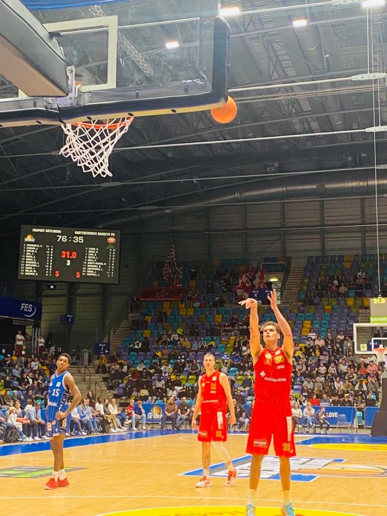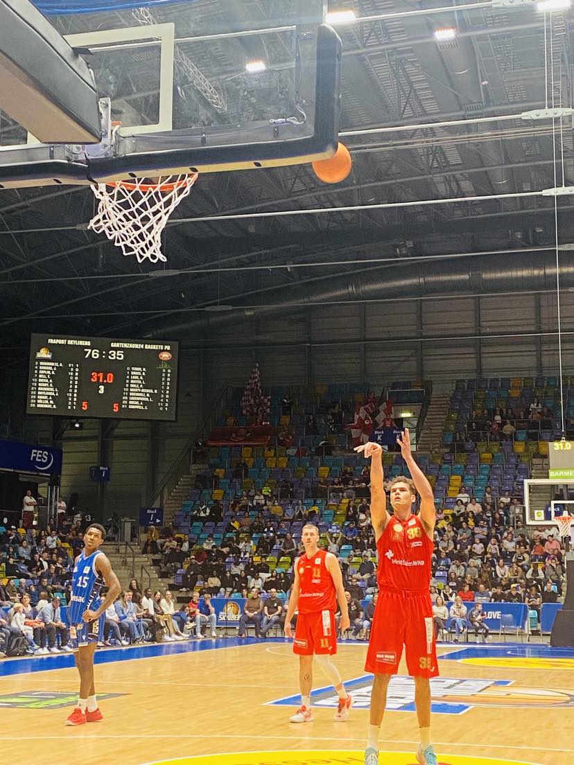 One often says it seems like it was yesterday, but when one looks back and thinks about the easyCredit BBL battles between the Fraport Skyliners and Gartenzaun24 Baskets, it really seems like it was ages ago. The last time these 2 clubs battled against each other in the BBL, it had been in Quantez Robertson´s rookie season while some of his teammates included legends Pascal Roller and Derrick Allen. Now 14 seasons later, the 2 organizations met again, but in the second league called Pro A. The Fraport Skyliners want to get back to the easyCredit BBL as rapidly as possible and began well at 2-0 while Paderborn started 1-1. Quantez Robertson may be gone, but one player is still around from the BBL glory days and that is Steve Esterkamp who has coached the team for years now. The clubs met on a cool Sunday afternoon as Autum had landed and the Fraport Skyliners performed an incredible almost crazy like first half offensive show that pretty much decided the game after 20 minutes as the Gartenzaun24 Baskets were miles away and got trampled badly 95-56. Frankfurt led by 58-19 at the break and finally gave the fans an offensive explosion something that had been missing the last 2 years as they were in the cellar of the BBL. Having an almost perfect half is somethings seldom seen. “I had a few halves like this. In the 2023 title game at Carleton, I had something like 18 points at the break and last season in pre season I had 18 points. Everything was working for us and me”, smilied Fraport Skyliner guard Aiden Warnholtz (188-G-2000, college: Carleton). It was only understandable that Frankfurt couldn´t duplicate the first half in the second half, but still scored 38 points while Paderborn improved from 19 points to 36 points. “We hit a lot in the first half and defended well not giving them easy shots. We slipped a bit in the third quarter and weren´t as sharp. You naturally slow down when your leading by so much. But good teams take an opportunity like that to form good habits and take the game as if it were 0-0. You try to get better and that is what we tried”, warned Aiden Warnholtz. Paderborn got in a hole early and never recovered even if they did improve their play and played Frankfurt 37-37 in the second half. “Frankfurt is a really good team. We let them dictate how we should play. We didn´t move the ball well or take care of the ball well. Being down by 39 points is simply absurd. If we had played in the first half the way we did in the second half, it would have been a tighter game. When we paly the way we know how then we can play with anyone. We played better in the second half, but there is still room for improvement. I´m proud how we didn´t let the game become embarrassing. It was one of those days where the basket looked 3 times bigger for Frankfurt”, stressed Paderborn center Julian Roche.