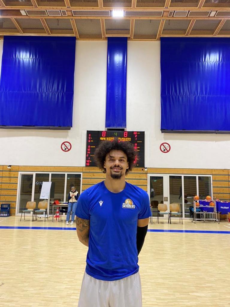 The Fraport Skyliners Juniors had Justin Onyejiaka back who had been missing the first few games because of injury. Frankfurt got their offense rolling right away as ex Wurzburg Forward Nils Leonhardt and Illinois native Trevian Bell connected for three´s. The Bavarian team also got their offense going getting a quick lay in by ex Koblenz center Brian Butler and a trey from sniper Lars Berger. Frankfurt continued to execute well getting back to back buckets from Onyejiaka and Bell for the 10-5 lead. Fellbach struck back with a lay in from Pro A veteran Andreas Kronhardt who has 244 games on his account and a trey from 20 year old German/Bulgarian Nikola Jekov to trail 12-10. It was a pretty even game as both teams executed well, but it felt like Frankfurt was a bit stronger. Frankfurt continued to execute very well finding Bell who scored twice and Jordan Samare made a massive throw down getting the perfect pass from Albert Schweitzer winner Philipp Hadenfeldt for the 20-13 lead. Frankfurt´s offense was just flowing better as their inside out game was giving Fellbach problems and their work on the boards was better. German Nik Schlipf who played at 2 NCAA 2 schools connected on a trey late in the first quarter as Fellbach trailed 20-16 after 10 minutes. “Our starts this season have been a problem. We always have to fight back. We had problems controlling Bell and Samare. Samare can do everything and is so athletic”, stated ex Fordham (NCAA) guard Zaire Thompson. The Fraport Skyliners Juniors shot 47% from the field and 25% from outside and had 9 rebounds and 3 turnovers while the SC Fellbach Flashers shot 44% from the field and 33% from outside and had 7 rebounds and 4 turnovers.