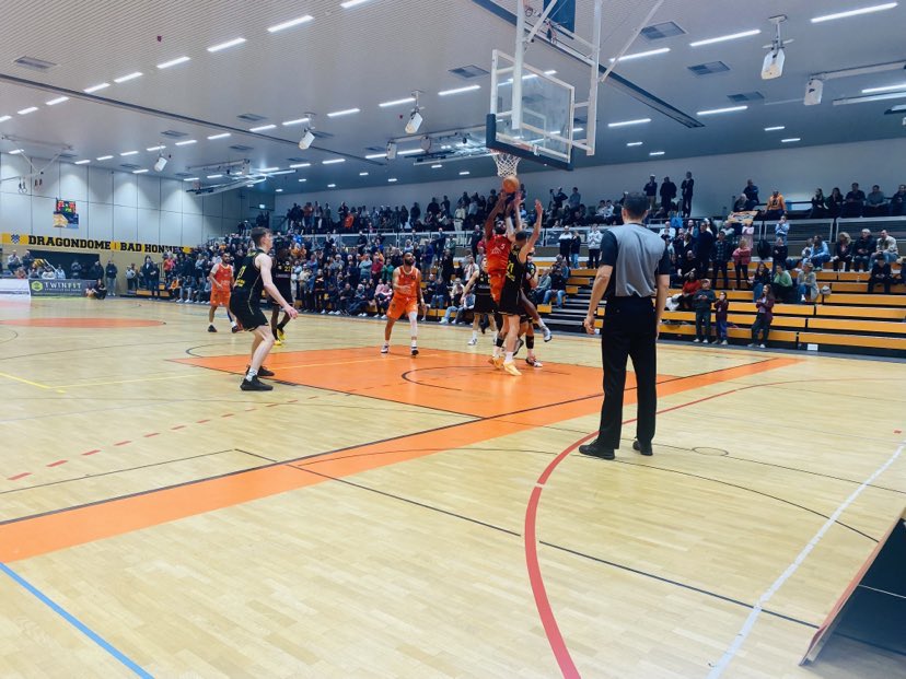 Porsche BBA Ludwigsburg were without Lenny Anigbata while the Dragons Rhondorf were without Jekabs Beck and Tyrese Blunt. Both teams didn´t shy away from using their offensive weapons right away. Ludwigsburg had the quick 7-3 lead showing their inside out game as ex Erfurt forward Dominykas Pleta and Ognjen Veljkovic scored inside and ex Dragon Eslie Edigin nailed a trey. But Rhondorf didn´t let down quickly tying the game at 9-9 as big men Leon Bulic and Avery Sullivan scored inside. Ludwigsburg made their presence quickly on the offensive glass getting extra offensive rebounds. The teams would trade leads often and Pleta was in attack mode from the get go and would go on to have his best scoring game in the Pro B. The Dragons Rhondorf tried to get away going on a 7-0 run to lead 20-13 as Sullivan and 17 year old Janne Muller hit three´s, but Ludwigsburg punched back with a 10-2 run to lead 23-22. In the run the guests got super production from young Dutch man Mock Icke with 2 baskets inside, a reverse lay up by Pleta and a clutch three points by young German Luca Stuebel with the 23-22 advantage. But ex Orange Academy guard Marko Rosic had the last laugh with a lay in and 24-23 Rhondorf lead. “We played too fast at the start. When we found to our game, we got rolling. We also had problems on the boards. We took it personal and did a better job in the second half”, stated Avery Sullivan. The Dragons Rhondorf shot 50% from the field and 38% from outside and had 10 rebounds and 6 turnovers while Porsche BBA Ludwigsburg shot 42% from the field and 25% from outside and had 12 rebounds and 3 turnovers.