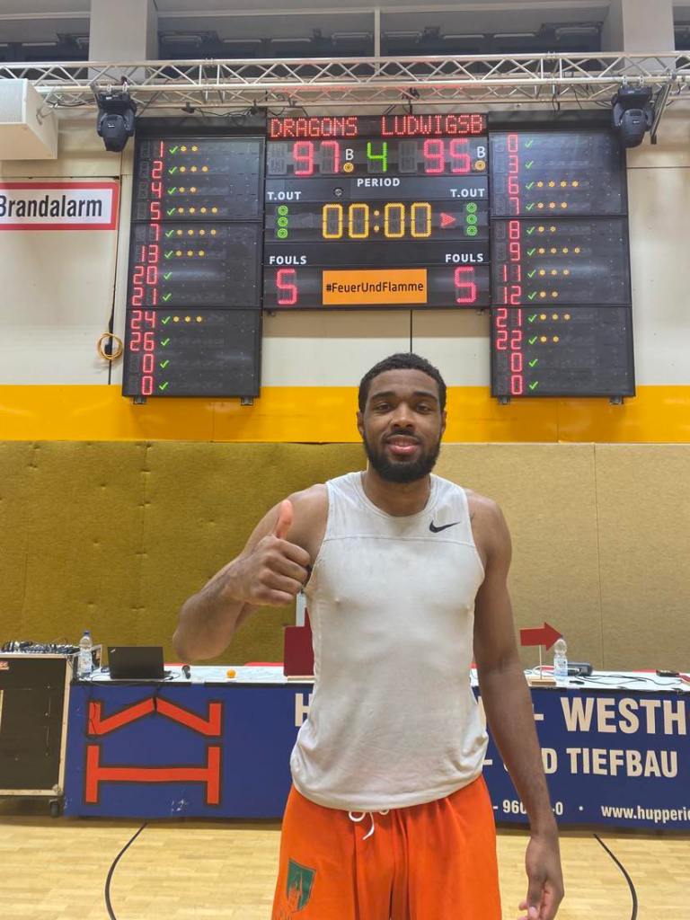 n the fourth quarter, both teams had the chance to decide the game, but instead it was the Dragons Rhondorf that had to fight back at the end get over the hump and let the Sullivan and Omojola show take over. It seemed like the Dragons Rhondorf had found Ludwigsburg´s number continuing to execute in the first minute grabbing the 79-72 lead as Sullivan nailed a beautiful old school hook shot, Muller made a lay in and ex Cologne German Antonio Pilipovic hit a trey. Rhondorf was on top, because they were getting support from many sides while Ludwigsburg seemed to only have a Pleta who could make a bucket blindfolded on this night. But they also had their 2 captains and main leaders Santana and Jung who began to contribute getting some baskets to trail only 79-77. After a Bulic step back jumper, Ludwigsburg made their last run of 11-2 to lead 88-33. In the run, the guests as usual got heavy production with Pleta who scored twice, and and Edigin made a thunderous dunk. The guests held the momentum as the Dragons 1-1 defense was nonexistent and now wanted to slam the door shut on the dragons with a Jung runner, Santana and Pleta free throws to lead 93-87 with2 minutes to play. “We were ok. We practice those situations all the time in practice being down by 5 points. We just stayed calm and fought back”, stated Avery Sullivan But the Dragons didn´t give up. Buck came up huge with a trey while Kelvin Omojola fed Sullivan with the perfect dime for the alley-oop dunk as Rhondorf trailed 93-92 with 1,30 to play. “Avery and I work on the alley-oop play. I had him in the corner of my eye”, said Kelvin Omojola. After a stop, Sullivan made free throws to give Rhondorf the 94-93 lead back. Esli Edigin came up big with a lay in with 47 seconds to play. Rhondorf that executed again as the Sullivan-Omojola show continued as Omojola found Sullivan wide open inside for the 96-95 lead. Omojola could of shot, but instead found the better positioned Sullivan for the winning basket with a few seconds to play. “I could of shot it, but I read the defense and saw him a mile away. He was the 99% basket”, warned Kelvin Omojola. “Kelvin and me are close on and off the court. Our chemistry showed. He is unselfish and just wanted to make the winning play”, expressed Avery Sullivan. Rhondorf then buckled down and forced Santana to a turnover and Sullivan closed out the victory with a free throw. “We had no communication on defense. Young guys get hectic. We didn´t execute the way we should of this. This was a learning lesson”, stated Khee Rhee. The Dragons Rhondorf were led by Avery Sullivan with 34 points and 12 rebounds. Janne Muller added 18 points and Leon Bulic 16 points while Porsche BBA Ludwigsburg were led by Dominykas Pleta with 29 points and 16 rebounds while Nico Santana added 16 points and Esli Edigin 15 points. The Dragons Rhondorf shot 50% from the field and 29% from outside and had 35 rebounds and 13 turnovers while Porsche BBA Ludwigsburg shot 48% from the field and 145from outside and had 40 rebounds and 13 turnovers.