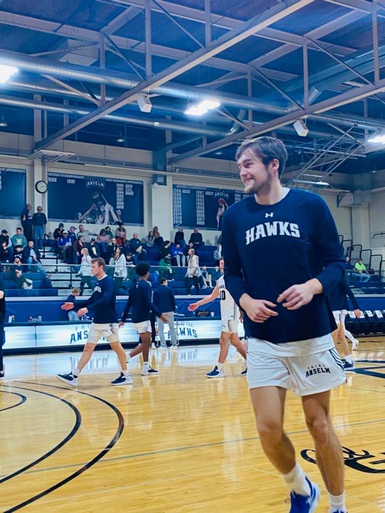 In the 2022-2023 season he took a new step and challenge enrolling at St Anselm which is a private Benedictine liberal arts college in Goffstown, New Hampshire about 10 minutes from Manchester. In his first season he played 16 games averaging 3,0ppg in 8,6 minutes per game. It has definately not been an easy ride for him so far. I started the first games, but had some bad games and foot problems. I was out of the rotation after that. I came back near the end of the season and came from the bench averaging about 10 minutes per game. It was a tough freshman year not knowing what to expect. I was up and down, but we did win the league title’, said Elias Rodl. His best scoring games occured in his first 2 games as he hit RMC and Daemen for 8 points a piece. One player that really was by his side in his freshman year was current senior Matt Becker. He is a great defender that is lanky, but very intelligent and can hit the three pointer. He is a calm guy and definately helped me find into the system. He was always very patient with me when I asked for advice’, added Elias Rodl. He plays for ambitious and demanding head coach Keith Dickson who is in his 17th year at Saint Anselm and has won 3 Northeast-10 titles. Coach is very stubborn, but very truthful. I respect his style. He will tell you directly if he likes something or doesn’t. He has been on me to keep improving my game’, stated Elias Rodl. So far this season. It hasn’t begun well for him as he has only collected DNP’s. But he is very ambitious and wants to play. I want to play more and win. You don’t always have to play much tob e successful. My goal ist o win. I try not to set that season goal, but just go day by day and try to get better each day’, warned Elias Rodl. He isn’t only surrounded by Americans, but the team is very international with 2 guys from Australia and one from Ireland. ‘It is cool to play with different nationalities. You get a good taste of what different cultures are about’, said Elias Rodl. He likes the game of German sharp shooter Andi Obst and ist a player that has a a solid mid range game and can score in many ways. Currently he is working most on his defense and ball handling. Defense has never been a strength of mine. I want to become more of a solid defender and just be smart’, warned Elias Rodl. Last season his dad who currently is coaching in Egypt visited him on campus and like so many other father’s of players has been a massive influence in his life on and off the court. He has helped me my whole life with my game. He helped me learn the basics and we also watched a lot of film. He is also a good father’, warned Elais Rodl. It will be interesting to see not only how his game continues to develop in the next years, but when he will finally be a normal rotation player. One thing I won’t forget from my visit to Saint Anselm was our interview. It is very seldom that I conduct interviews with German palyers in english. I remember intervieiwing Maodo Lo in english simply because I wanted to see how good his english was since he also played in the NCAA at Columbia. There are only 2 other Germans on campus. I hardly talk any German anymore’, smiled Elias Rodl. This kid will definatley go his path. In 3 years we will know if he will play professionally or go into the working world with a job possibly in the business world. Until then he will get enriched further by the American culture.