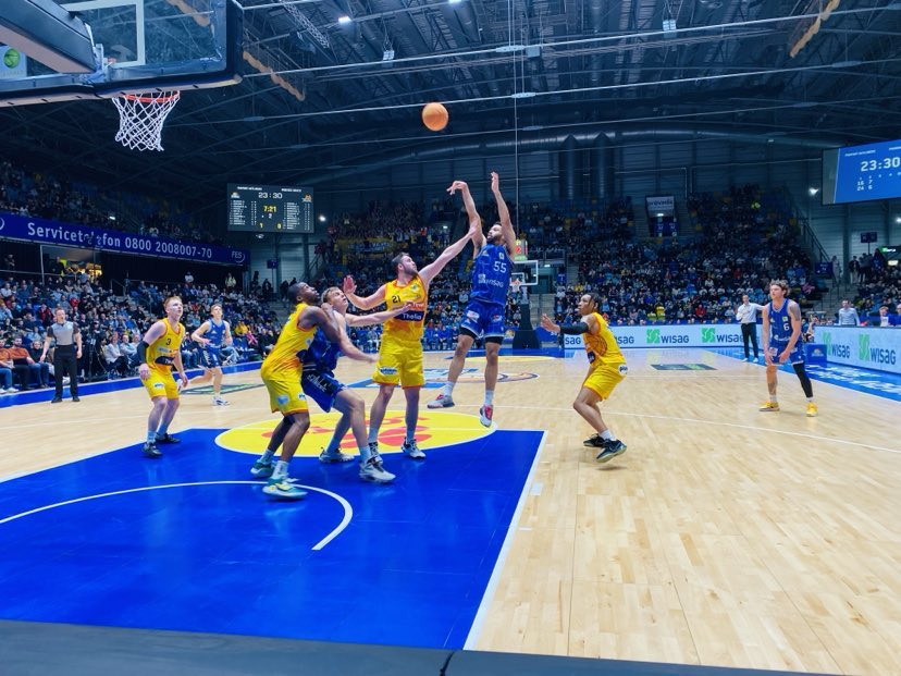 In the third quarter the Fraport Skyliners were down by as much as 19 points, but just kept chipping away and only had a 10 point deficit after 30 minutes. Booker Coplin began the second half with a trey, but Frankfurt just couldn´t get any positive consistency as soon they were at the 5 team foul mark with only 2 minutes elapsed. Phoenix Hagen got to the free throw line and got 5 points from Nawrocki and Lennart Boner to lead 53-36. Frankfurt would show flashes of success on offense getting lay in´s from Coplin and Warnholtz, but just couldn´t get stops as Nawrocki made free throws and ex Giessen forward Tim Uhlemann made a pretty fade away shot from the wing in Nowitzki manner to lead 59-40. But the Fraport Skyliners never gave up and just went play by play and produced a lethal 18-7 run to trail only by 66-58 after 3 quarters. In the run, Frankfurt was led by Kevin McClain who took maters into his own hands and played the way a point guard should leading his team back with 12 points. He dropped a trey, made a lay in and scored 7 free throws. 2018 JBBL (U-16) winner Nolan Adekunle also contributed 6 points with 2 three´s. Frankfurt stepped up the defensive intensity and physicality as the guests got tough looks and were met hard in the paint when they drove to the rim. “We fought hard and never gave up. We played more aggressive at both ends and attacked the rim more”, expressed Kevin McClain. “We got in the bonus quickly and they adjusted well. I feel like they matched our speed and physicality”, commented Siler Schneider. Phoenix Hagen shot 44% from the field and 33% from the parking lot and had 34 rebounds and 6 turnovers while the Fraport Skyliners shot 34% from the field and 38% from the parking lot and had 30 rebounds and 11 turnovers.