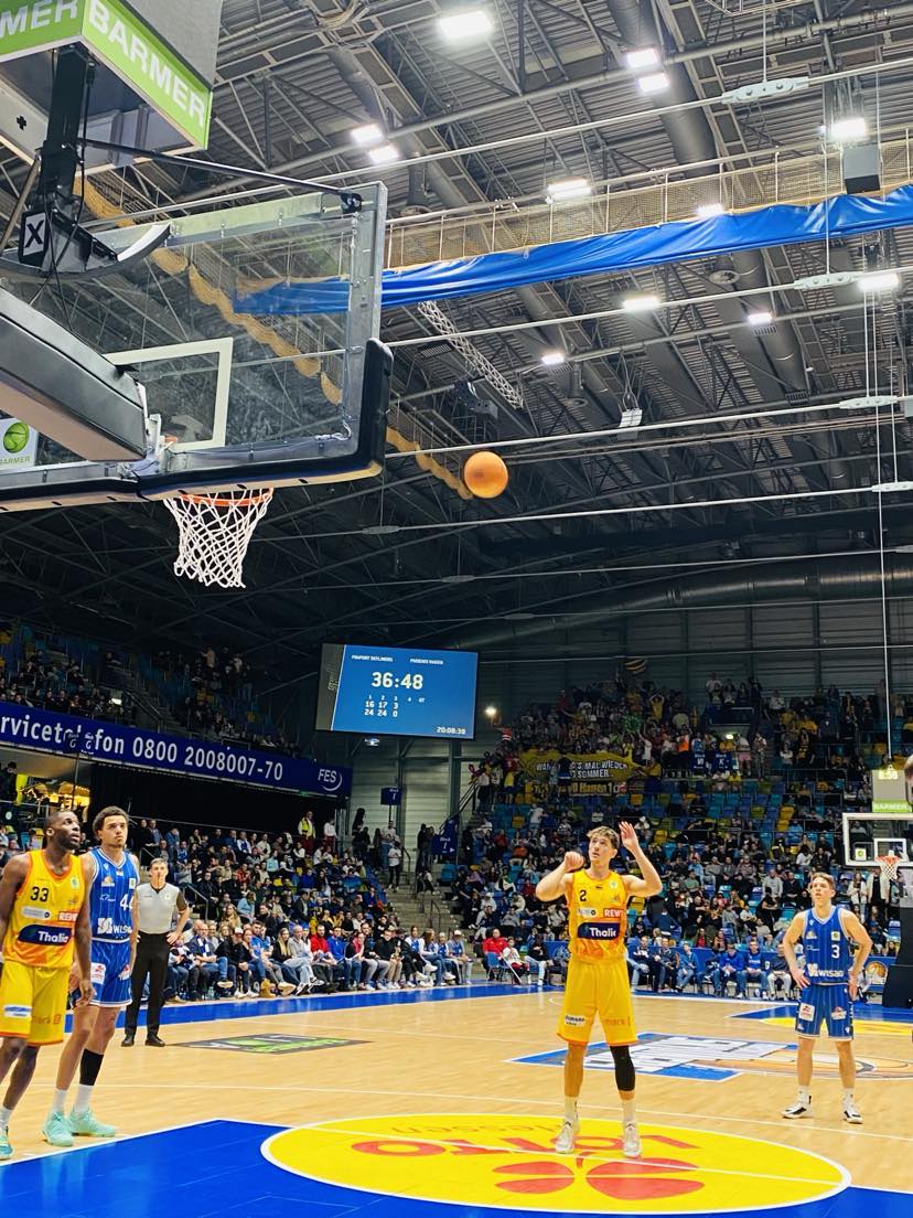 Phoenix Hagen continued to control the game in the second quarter and led by as much as 15 points as the Fraport Skyliners just had no remedy how to get over the hump. The Fraport Skyliners actually began hot going on a 7-3 run to trail the guests by only 27-24. Frankfurt provided inside out basketball getting a trey from Canadian David Muenkat and lay in´s from ex Duesseldorf guard Booker Coplin and ex Carleton guard Aiden Warnholtz. Frankfurt definitely moved the ball better and found more daylight in the paint area which gave them even better looks. But Phoenix Hagen didn´t let that burst of energy from Frankfurt deter their game as they went on a 9-4 run aided by Siler Schneider who produced 7 points. He was in constant attack mode and one has to wonder if he was motivated by his friend and ex teammate TJ Shorts at UC Davis 27 points a few days ago in Eurocup action? “I try to watch his game and support him as much as possible. For him to score 25 points and get 10 assists is a normal thing these days. His game continues to motivate me and I just try keep working hard to maybe reach his level one day”, said Siler Schneider. Phoenix Hagen continued to do a great job taking advantage of Frankfurt´s mistakes and ruled the boards. Phoenix Hagen then got some energy from Washington native and rookie Brock Mackenzie as he gave his team 6 straight free throws for the 42-27 advantage. Frankfurt got some vital three´s late from McClain and Coplin, but also allowed buckets to Phoenix Hagen as Devonte McCall dropped an alley oop dunk with the feed from Mackenzie and Nawrocki used his quickness and IQ to get a lay in as Phoenix Hagen still controlled the game easily going into the break with the 48-33 advantage. Phoenix Hagen shot 50% from the field and 38% from the three point line and had 24 rebounds and 4 turnovers while the Fraport Skyliners shot 30% from the field and 29% from the three point line and had 17 rebounds and 8 turnovers. “We did a good job taking what the defense gave us. We key in on their ball screen defense and just made plays”, added Siler Schneider.