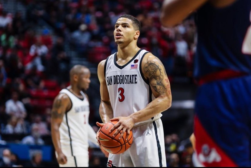 The First Sign of a player that has the potential to go his route overseas is knowing that he isn´t satisfied. That will to keep grinding and to reach the highest level is something that easyCredit BBL rookie Matt Bradley (193-G-1999, college: SDSU) is striving for. He has already competed against very many talented and high profile players in his young career before coming to Rostock, but now is undergoing a reality check there and paying his dues as he isn´t the number one scoring option and is playing a lot less minutes compared to what he saw in the NCAA. But that’s ok for him. What this guy has experienced in the last years has been incredible. It started in high school where he had a 72 point game to reaching the NCAA final last season with San Diego State University and also hitting a game winner a few years back with California against one of the best defenders in the NBA. Matt Bradley has unending talent and has proven in the last years that this guy could go places overseas with his game. “I grew up near where the Ball brothers are from. LaMello scored 92 points in a game and LiAngelo had scored 72 points once. I remember texting a friend a week before the game where I scored 72 points that I would break the record. I didn´t break the record, but scored as many as he did. I remember being taken out 3 minutes before the end with us up 20 points. I remember with my game winner against Washington that they had some future NBA guys on the team with Isaiah Stewart and Jaden McDaniels. I didn´t have a high scoring game, but hit many clutch shots. I will never forget making the winner over Jaden McDaniels. That will always give me bragging rights. It was a fun night”, remembered Matt Bradley. As a rookie he is averaging only 8,1ppg and is playing 10 minutes less than in the NCAA. Despite having this adversary, the experience will only fuel him for the rest of the season and beyond. “It has been humbling in Rostock. In college I scored a lot and now I´m not. But coach Held has been great. He continues to push me to keep working and tells me I´m doing great. We have many great players and I just try to do my best and help my team win in any way I can. I´m not looking at now, but at the big picture down the road. I´m not worried about my numbers now. I feel like I´m starting to find my groove”, warned Matt Bradley. Matt Bradley has competed and been successful against the Ball´s and McDaniel´s but isn´t satisfied and is looking at the big picture overseas.