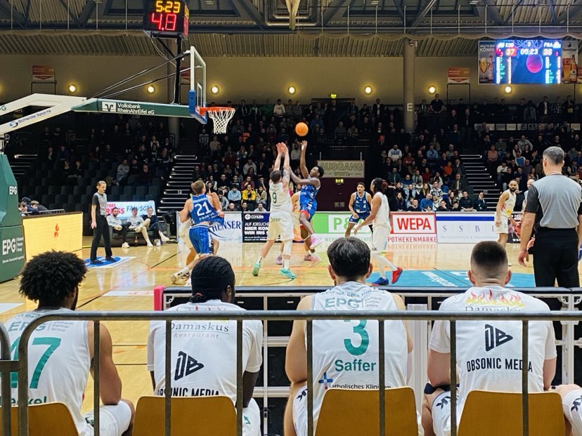 The Fraport Skyliners and EPG Baskets Koblenz closed out 2023 with massive wins stopping their losing streaks of 1 game beating the favorite Kirchheim Knights and the Eisbaeren Bremerhaven. Koblenz did a superb job in their own living room getting back to stellar Koblenz defense while Frankfurt grinded out a tough win in OT in Bremerhaven with the help of crucial buckets by Canadian Aiden Warnholtz. Both wins were key as it gave both clubs must needed self confidence going into 2024. The EPG Baskets Koblenz met the Fraport Skyliners for the first time in their history and who would of thought that only 4 years ago the EPG Baskets Koblenz were competing in the Regionalliga and Frankfurt in the easyCredit BBL. Both teams came into the New Year pumped and the game turned out to be a defensive showcase and a tale of 2 halves. Koblenz controlled the first half while the Fraport Skyliners controlled the second half and increased their defense a few notches in the fourth quarter allowing only 5 points and winning another come from behind win on the road this time 69-54. “We played with a lot of grit in the second half. We matched their intensity and then increased it over theirs. We took over the game with our defense. We were very physical and rebounded the ball well”, stressed Fraport Skyliner guard Kevin McClain (190-G-1996, college: Belmont). The EPG Baskets played a great defensive first half, but offensively couldn´t find a rhythm in the second half and couldn´t buy a field goal in the last frame. “It was a very defensive game. Both teams defended well, but we switched better in the first half. They found better solutions in the second half and hit their shots better. We didn´t make good decisions and had too many turnovers that led to easy Frankfurt baskets”, stressed EPG Baskets Koblenz guard Marvin Heckel.