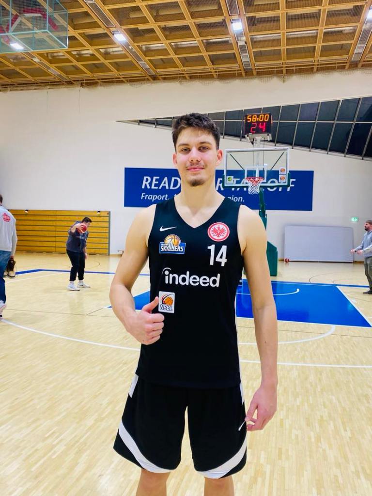 Dusan Nikolic who remembers Nemanja Nedovic, Russell Westbrook and Miro Teodosic as being his childhood idols was born of Feb 25, 2005 in Bad Nauheim, Germany and possesses Serbian roots. He began to play soccer at a young age as basketball wasn´t present yet. But that changed when he heeded the words of his dad who said that basketball was played more in Serbia. “My dad told me that basketball fit to me better than soccer, so I took his advice and began to play basketball”, remembered Dusan Nikolic. He was 8 years old when he picked up the basketball for the first time. He began his career in Giessen and enjoyed his stay there despite not seeing eye to eye with his coach who wanted him to play more the 4 position because he had reached 180cm at a very young age. But he knew that playing the guard position was his natural calling. He then moved to Lich which he also remembers dearly as a place where everyone accepted him with open arms and where he actually was allowed to play with and against men in the Regionalliga. There he got early basketball grooming from American Scottie Stone who balled at St Cloud State (NCAA) who would always train with him. He then made the jump to the Fraport Skyliners in 2021 as he played Pro B and NBBL. In the U-19 league NBBL he played 16 games averaging 8.9ppg, 3.1rpg, 1.6apg, FGP: 47.3%, 3PT: 26.8%, FT: 68.8%, and with Pro B team Juniors was thrown right into the shark tank playing 9 games averaging 1.4ppg, 1.2rpg. “It was a good first season for me. They believed in me right away in the NBBL as Miran Cumurija let me play and playing Pro B was a surprise for me. It wasn´t normal to play Pro B so quickly like I did. The competition helped me with the physicality that I saw. I got more responsibility right away which helped me game grow. I was able to learn from my mistakes by being able to play”, stressed Dusan Nikolic. He scored in double figures in 7 games in the NBBL including 18 points against Bamberg and 17 points against FC Bayern Munich. He was fortunate to be around Matthew Meredith (German Devin Booker) and tried to soak in as much as possible from his fine qualities. “Matthew was like a mentor to me as was Philipp Hadenfeldt. Matthew took me under his wing. He was a very good teammate and always gave me tips. The most im portant thing he told me was too always shoot the ball when I´m open and don´t hesitate”, warned Dusan Nikolic.