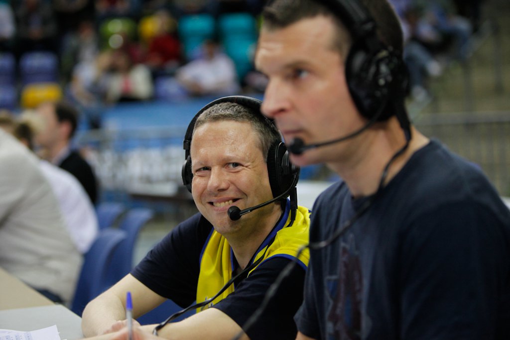 Marco Schmitz and Miles Schmidt-Scheuber calling a Frankfurt-Hagen game in the 2010-2011 season in Frankfurt