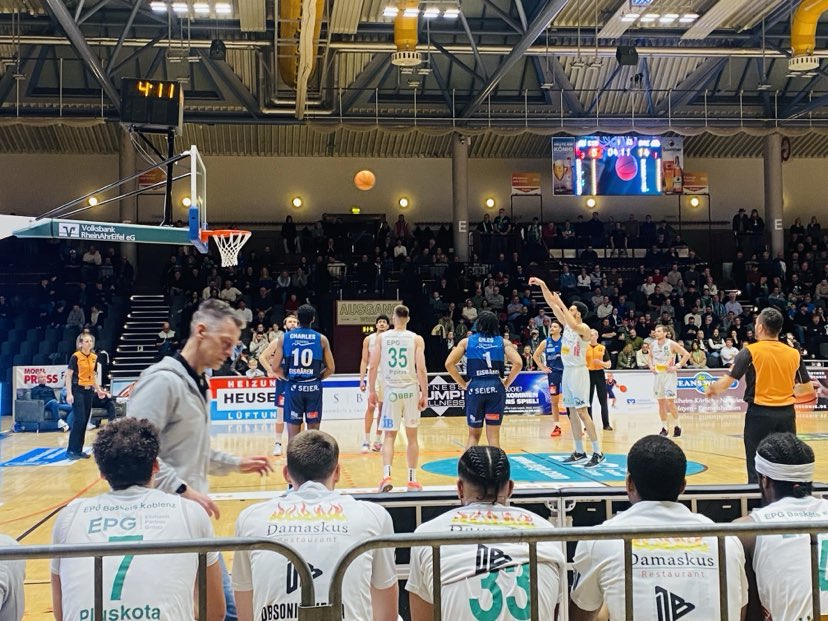 The EPG baskets Koblenz had a terrible start in the first quarter, but then recovered well to trail only 19-14 after 10 minutes. Ex Sacramento State forward Nick Hornsby got the guests on the board first with a 20 footer, but that was rapidly equalized with a Leon Friederici pull up jumper. Then the Eisbaeren Bremerhaven got rolling and went on a lethal 10-0 run and stopped 7 Koblenz possessions. In the run, the guests got vital support from experienced Pro A big man Robert Oehle (209-C-1988) with 5 points while ex Citadel (NCAA) sniper Matt Frierson hit a trey and German Adrian Breitlauch made a lay in for the 12-2 lead. Bremerhaven sparkled with a lot of isolation play while the EPG Baskets Koblenz settled for quick offense, but shots just didn´t fall. Koblenz finally stopped the run with a key three pointer from ex Iserlohn center Gabriel De Olveira and Moses Poelking free throws to trail 14-5. Koblenz brought needed energy as captain Marvin Heckel made a lay in and Gabriel de Olveira was on spot again with a dunk on transition and three pointer to cut the lead down to 17-14. “Gabriel played very well. He made shots and reduced mistakes on the defensive end”, stressed EPG Baskets Koblenz sport director Thomas Klein. Icelandic forward Hilmar Henningsson closed out the first quarter with free throws as the guests led 19-14. “We had 6 weak minutes where we were unstable. We played well for 3 minutes with high tempo and good execution. We didn´t defend their cuts well and gave up too many offensive rebounds”, stated Thomas Klein.