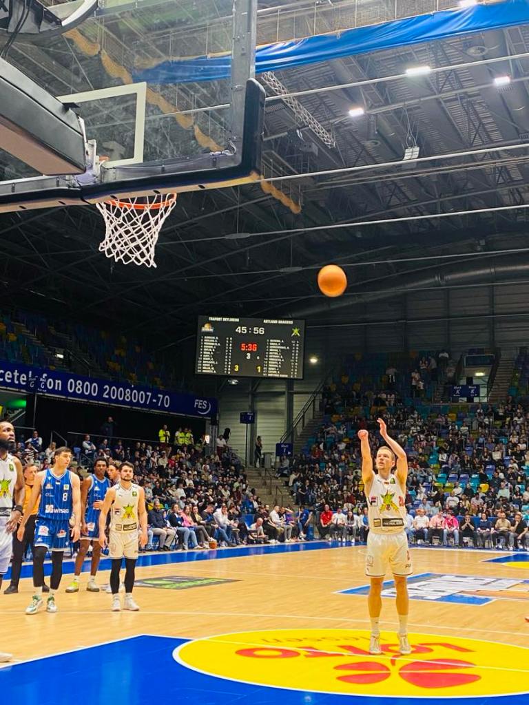 The fourth quarter was a real battle as one could see that both teams wanted it badly. It looked like the Fraport Skyliners might pull it out, but in the last 2 possessions it was the hot shooting of Brandon Thomas that brought the game into overtime. Thomas hit a three pointer early for the 66-63 Dragons lead. Frankfurt kept chipping away getting a Knauf basket and free throws by Onyejiaka to tie the game at 68-68. The teams would trade leads as Frankfurt relied on their hot three point shooting while the Artland Dragons continued feeding their bigs as Ratton scored twice including a dunk. Frankfurt got three´s from Coplin, Henry and Vrcic for the 81-77 lead as Frankfurt had the momentum with 53 seconds to remaining. But then came the Brandon Thomas show as he drilled home a trey to trail 81-80. Cam Henry was aggressive getting inside for a lay in, but once again it was Thomas again taking over leading the Dragons into overtime with another trey to dead lock the contest at 83-83. “I told the guys that I would take the last shots. Coach put me in for a reason. I had to take responsibility. I´m thankful I made the shots”, smiled Brandon Thomas. “Offensive rebounds killed us. We couldn´t stop their pick and roll or penetration”, warned Ife Ajayi. In the overtime period the Artland Dragons got on the board first and would control the 5 minutes as Frankfurt always had to play catch up. Ex Monaco center Jordan Ratton was key as he kept attacking the paint and scored with an old school hook shot and then wooed the fans with a massive alley oop dunk for the 91-87 lead. “I see Jordan make dunks every day. He is so strong, fast and can jump. He reminds me of when I was younger in that he is always working to get better. I have seen so much improvement and that adds to the pride”, said Brandon Thomas. Frankfurt got a vital tip in by Cam Henry with 33 seconds to tie the game at 91-91. Anthony and Ratton free throws gave Artland the 93-91 lead with 25 seconds to paly. Vrcic missed an open three pointer with 5 seconds remaining and Buzz Anthony sealed the win with free throws. “Vrcic could of ended the game. But basketball sometimes is all about luck. We were the luckier team”, stated Brandon Thomas. “We were unable to get easy baskets and their offensive rebounds and crucial shots got them the win”, added Ife Ajayi. The Artland Dragons were led by Brandon Thomas with 19 points while Jake Forrester had 17 points while the Fraport Skyliners were led by Bruno Vrcic with 18 points. The Artland Dragons shot 55% from the field and 42% from outside and had 34 rebounds and 16 turnovers while the Fraport Skyliners shot 43% from the field and 36% from outside and had 35 rebounds and 12 turnovers.