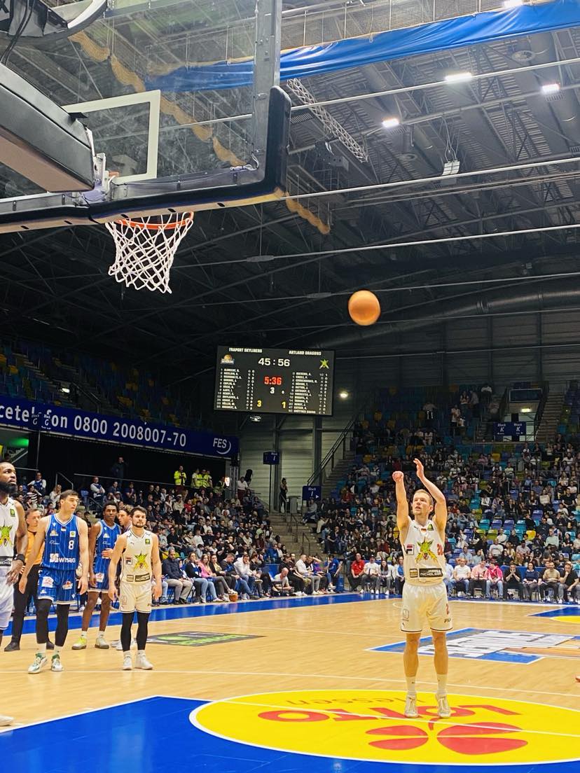 The fourth quarter was a real battle as one could see that both teams wanted it badly. It looked like the Fraport Skyliners might pull it out, but in the last 2 possessions it was the hot shooting of Brandon Thomas that brought the game into overtime. Thomas hit a three pointer early for the 66-63 Dragons lead. Frankfurt kept chipping away getting a Knauf basket and free throws by Onyejiaka to tie the game at 68-68. The teams would trade leads as Frankfurt relied on their hot three point shooting while the Artland Dragons continued feeding their bigs as Ratton scored twice including a dunk. Frankfurt got three´s from Coplin, Henry and Vrcic for the 81-77 lead as Frankfurt had the momentum with 53 seconds to remaining. But then came the Brandon Thomas show as he drilled home a trey to trail 81-80. Cam Henry was aggressive getting inside for a lay in, but once again it was Thomas again taking over leading the Dragons into overtime with another trey to dead lock the contest at 83-83. “I told the guys that I would take the last shots. Coach put me in for a reason. I had to take responsibility. I´m thankful I made the shots”, smiled Brandon Thomas. “Offensive rebounds killed us. We couldn´t stop their pick and roll or penetration”, warned Ife Ajayi. In the overtime period the Artland Dragons got on the board first and would control the 5 minutes as Frankfurt always had to play catch up. Ex Monaco center Jordan Ratton was key as he kept attacking the paint and scored with an old school hook shot and then wooed the fans with a massive alley oop dunk for the 91-87 lead. “I see Jordan make dunks every day. He is so strong, fast and can jump. He reminds me of when I was younger in that he is always working to get better. I have seen so much improvement and that adds to the pride”, said Brandon Thomas. Frankfurt got a vital tip in by Cam Henry with 33 seconds to tie the game at 91-91. Anthony and Ratton free throws gave Artland the 93-91 lead with 25 seconds to paly. Vrcic missed an open three pointer with 5 seconds remaining and Buzz Anthony sealed the win with free throws. “Vrcic could of ended the game. But basketball sometimes is all about luck. We were the luckier team”, stated Brandon Thomas. “We were unable to get easy baskets and their offensive rebounds and crucial shots got them the win”, added Ife Ajayi. The Artland Dragons were led by Brandon Thomas with 19 points while Jake Forrester had 17 points while the Fraport Skyliners were led by Bruno Vrcic with 18 points. The Artland Dragons shot 55% from the field and 42% from outside and had 34 rebounds and 16 turnovers while the Fraport Skyliners shot 43% from the field and 36% from outside and had 35 rebounds and 12 turnovers.