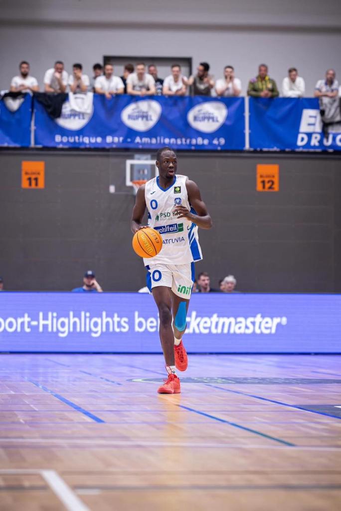 Bakary Dibba (206-PF-2001, agency: Blacktop Management) is a 22 year old 206cm forward from Denmark that just completed his first season with German Pro A team PS Karlsruhe helping them win the Pro A title averaging 14,6ppg, 6,8rpg, 1,1apg and 1,2spg. He played with the Tigers Tuebingen from 2021-2023 playing 81 Pro A games averaging 3,3ppg and 7,0ppg in his 2 seasons and also played 27 Regionalliga games averaging 17,8ppg and 20,9ppg. He began his basketball career with Copenhagen Basketball (BasketLigaen) averaging 10.0ppg, 4.1rpg, 1.4apg, 1.3spg, FGP: 53.2%, 3PT: 35.8%, FT: 54.2%. He spoke to germanhoops.com about basketball.