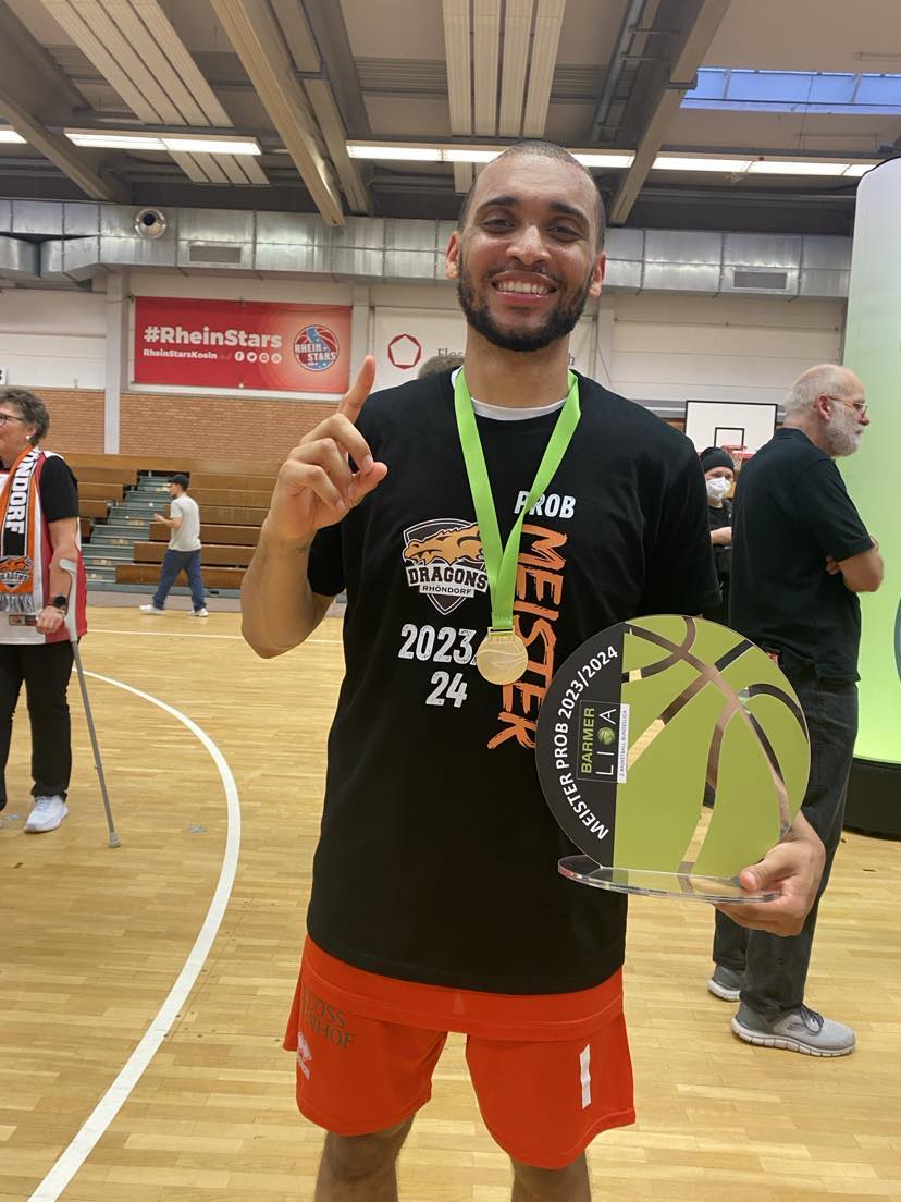 Fans couldn´t have asked for a better setting for the second final in Cologne. The winner of the Pro B final title has to have the better points difference out of both games. The Dragons Rhondorf came to Cologne with only a 2 point win and the game was up for grabs as the RheinStars had the slight advantage having the home court advantage. The Dragons gave up a 9-0 run to Cologne in the first game and could have come to their living room with more points. But giving up that last run was a blessing in disguise. “It was huge blessing Miles, because even though we won the game we were angry with how we ended it! It left a sour taste in our mouths. But when we went back and watched the film, we loved how we played the other 39 minutes of the game so it gave us the perfect amount of confidence and motivation going into game 2”, said Kelvin Omojola. Another blessing in disguise was ex RheinStars Cologne forward Antonio Pillipovic. He sparked the incredible weekend three point explosion as the Dragons nailed 35 three´s and Pilipovic added 13 in the 3 point rain fall. It also didn´t hurt that the Dragons put up extra shots on Saturday. “AP was locked in! He’s a high level player who is a sniper. With him going against his old club I knew he would be dialed in from the beginning. I’m not surprised at all he had the series he did, deservingly with him receiving series MVP! We watched film for an hour and then got up a ton of shots as a team. We knew the season would be over in 24 hours so we all wanted to be ready for Game 2”, warned Kelvin Omojola. The defense wasn´t a big strength of the Dragons in the season, but the club practiced it hard every day and they were rewarded in the 2 final games playing their best defense of the season. “We knew that if we stuck with our principles and executed it with more urgency and intensity that we would come away with the win. Details are important but so is urgency and aggressiveness”, warned Kelvin Omojola. The title was part of the team and great coach Stephan Dohrn as both came together from day 1 and created a great team chemistry and just worked together until the end of the final. “I’ve never been on a team before where literally every single guy liked one another. Guys hung out all the time after practice, got food together, and it showed on the court. We held one another accountable and didn’t get offended by it. Plus, it made coming to work fun every day. It all starts with coach. I firmly believe that every team is a DIRECT reflection of the coach. Stephan is not only great coach, but an even better person. He held guys accountable, made practices tough but fun, and is very easy to talk too on and off the court. He helped build the great chemistry and culture that our team had. He instilled in us our defense principles and by the time the playoffs rolled around, we were executing it at a high level. It all starts with him”, added Kelvin Omojola.