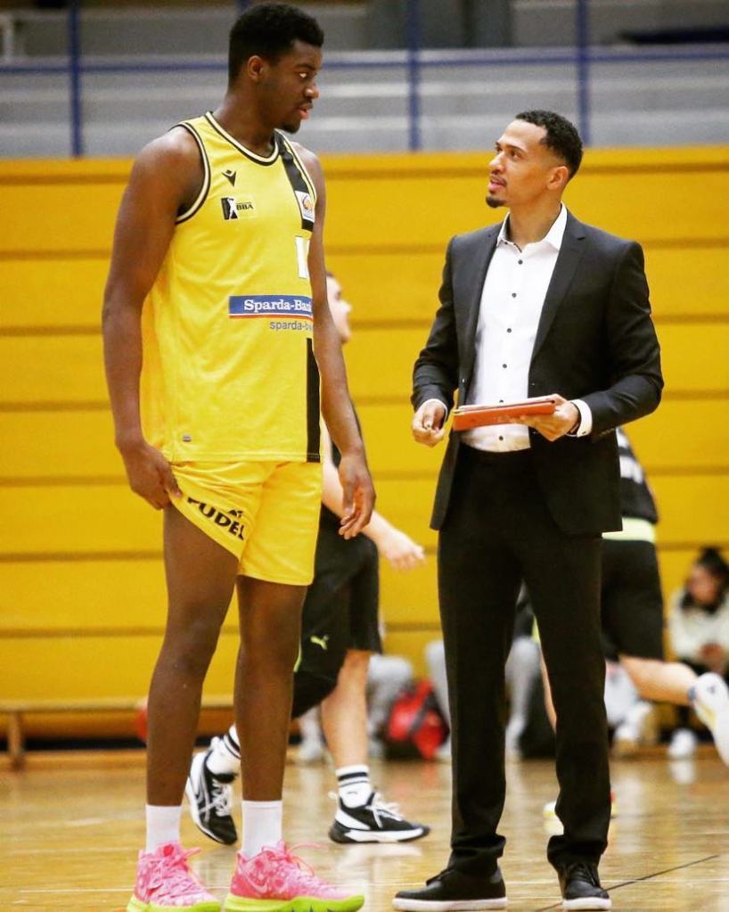 I reach new Hakro Merlins head coach David McCray on a cool July morning a day before July 4th as he is on his way to Crailsheim. There isn´t a better guy to talk to than him concerning Hukporti who was his teammate and coach at the NBBL and easyCredit BBL level. The German big man who is 22 years old and is 214cm was already playing NBBL (U-19) ball as McCray was still a pro in the 2018-2019 season. He made his Basketball Champions League debut at age 16 scoring 4 points in a 1 minute of play against Turkish team Banvit and scored 6 points in 9 minutes a day before his 17th birthday against Euroleague team FC Bayern Munich. His stellar play at already a young age was no surprise to anyone. “You could already see then in 2018 how talented a player he was. We had a very good relationship already from the start. I was like a mentor for him. It was really exciting to see then how good he was”, said David McCray. McCray who had a stellar 16 year career where he played more than 400 easyCredit BBL games and 9 seasons with the MHP Riesen retired in 2019 and then went into coaching in the Riesen organization. He remembers Hukporti´s rise as a player as if it was yesterday and in the 2019-2020 season, he played 19 BBL games averaging 2/1 stats and in the NBBL averaged 17/9 stats while also juggling school. “It was a big challenge going to school and playing. He always brought much energy and trained really hard. He always gave his all even if he played little minutes. He could still impact the game with his length”, remembered David McCray. Hukporti had the luxury of battling talented center Jonas Wolfarth-Bottermann on a daily basis. “Jonas took him under his wing and really helped him with his post game. It was great to see them play against each other last season when Jonas was with Hamburg”, added David McCCray.