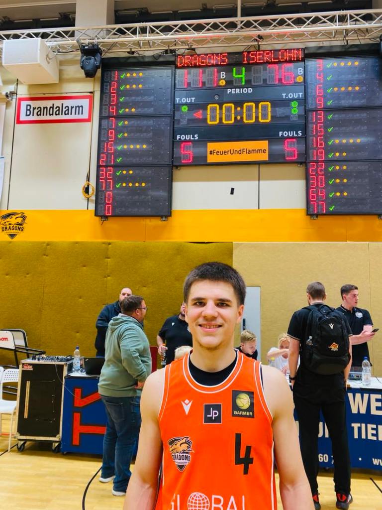 Marko Rosic (176-PG-2005) is a 18 year old 176cm point guard playing his second season with Pro B team Dragons Rhondorf. Last season with the Dragons he averaged 5.1ppg, 1.3rpg, 3.3apg, FGP: 27.7%, 3PT: 35.9%, FT: 74.4% in the Pro B and also played also at Team Bonn/Rhoendorf U19 team (NBBL) averaging 20.2ppg, 3.0rpg, 4.5apg, FGP: 48.9%, 3PT: 35.3%, FT: 84.8%. He began his career in Munster where he played JBBL and then moved to Orange Academy in 2020. In the 2021-2022 season he played with BBU 01 Ulm (Regionalliga) averaging 7.9ppg, 2.9rpg, 3.2apg, FGP: 41.6%, 3PT: 24.1%, FT: 73.8% and with Orange Academy U19 team (NBBL) averaging 16.6ppg, 6.4rpg, Assists-3 (5.8apg), 1.8spg, FGP: 36.1%, 3PT: 36.8%, FT: 83.3%. In the 2022-2023 season he played with Orange Academy Ulm (ProB) averaging 6.6ppg, 1.9rpg, 2.8apg, 1.1spg, FGP: 36.7%, 3PT: 37.7%, FT-20 (93.3%) and with BBU 01 Ulm (Regionalliga) averaging 14.1ppg, 3.9rpg, 7.9apg, 1.8spg, FGP: 39.7%, 3PT: 32.7%, FT: 87.0%. He spoke to eurobasket after the massive 111-76 win over Pro B team Iserlohn.