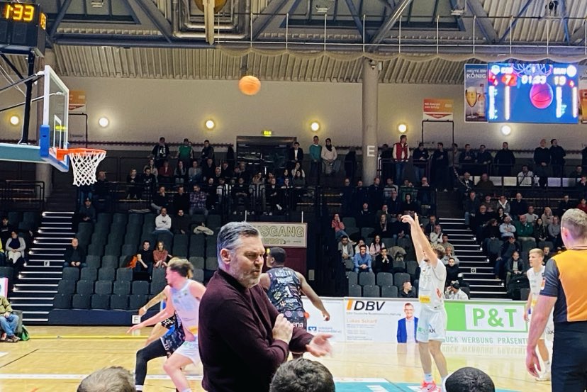 In the second quarter the Uni Baskets Munster continued to up their lead and play good basketball at both ends while the EPG Guardians Koblenz couldn´t keep up with their opponent and lost more and more energy as the clock ticked down. They began almost identically with the same run of the first quarter, but this time it was a 16-2 run to extend their lead to 41-15. In the run Munster received lethal support from Spanish point guard Seikou Jawara who scored 8 points in a row including back to back three´s while ex Oldenburg German Stefan Wess hit a trey as did Weitzel. Munster stepped their game up a level in this span as they defended more aggressively on ball and upped their intensity on offense as the ball movement was better. The German support from Munster was consistent as anyone head coach Gotz Rohdewald threw at Koblenz stepped up. Koblenz got a 8-0 run down the stretch as every now and then Koblenz would execute in fine fashion. Blunt added 5 points and Hanzalek also scored as these 2 players were the only real Guardians who took responsibility on this day. German Julius Ferber delivered a clutch 5-0 run with a trey and lay in in the last seconds giving the guests the commanding 53-27 advantage at the break. “One saw by half-time that the guys were tired. Draper and Bradley were unable to play their games the way they know how to”, stressed Thomas Klein.
