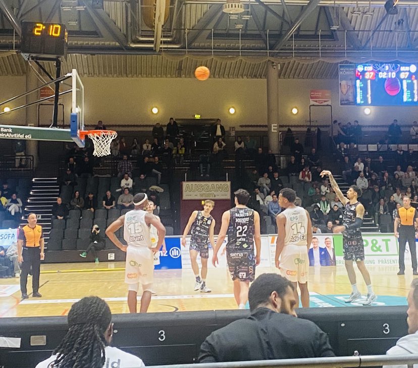 The Uni Baskets Munster came out roaring and luckily for Koblenz, they found better into their game to only be down by 12 points after 10 minutes. Munster jumped all over Koblenz leading 18-2 as the CGM arena was as quiet as ever as the comparison between both teams was like night and day. Munster wasn´t really doing anything fancy, but getting easy transition baskets and just attacking the rim whenever possible as surprisingly they layed off their hot three point shooting as they were second best in the Pro A coming into the contest. Ex BBL player Jonas Weitzel dominated the paint area scoring twice while American ex Butler forward Bo Hodges supplied 9 points as his athleticism allowed him to get easy baskets. American ex Butler (NCAA) forward Tyler Groce also scored twice showing he can play above the rim. Koblenz couldn´t establish any offensive rhythm as they didn´t move well with out the ball. They did attack the rim well, but missed many easy lay ups. They did finish the first quarter in fine fashion with a 11-7 run to get back into the game and trail 25-13. American Alin Blunt and German Jakob Hanzalek scored inside while American ex NCAA 3 player Kasey Draper and German Henning Schaake made free throws. “We missed many easy shots. Koblenz could of taken more advantage of the less aggressive on ball defense they were seeing from Munster. They were containing Draper well. We played good on ball defense. Munster was doing just enough to have the lead”, stated Thomas Klein.