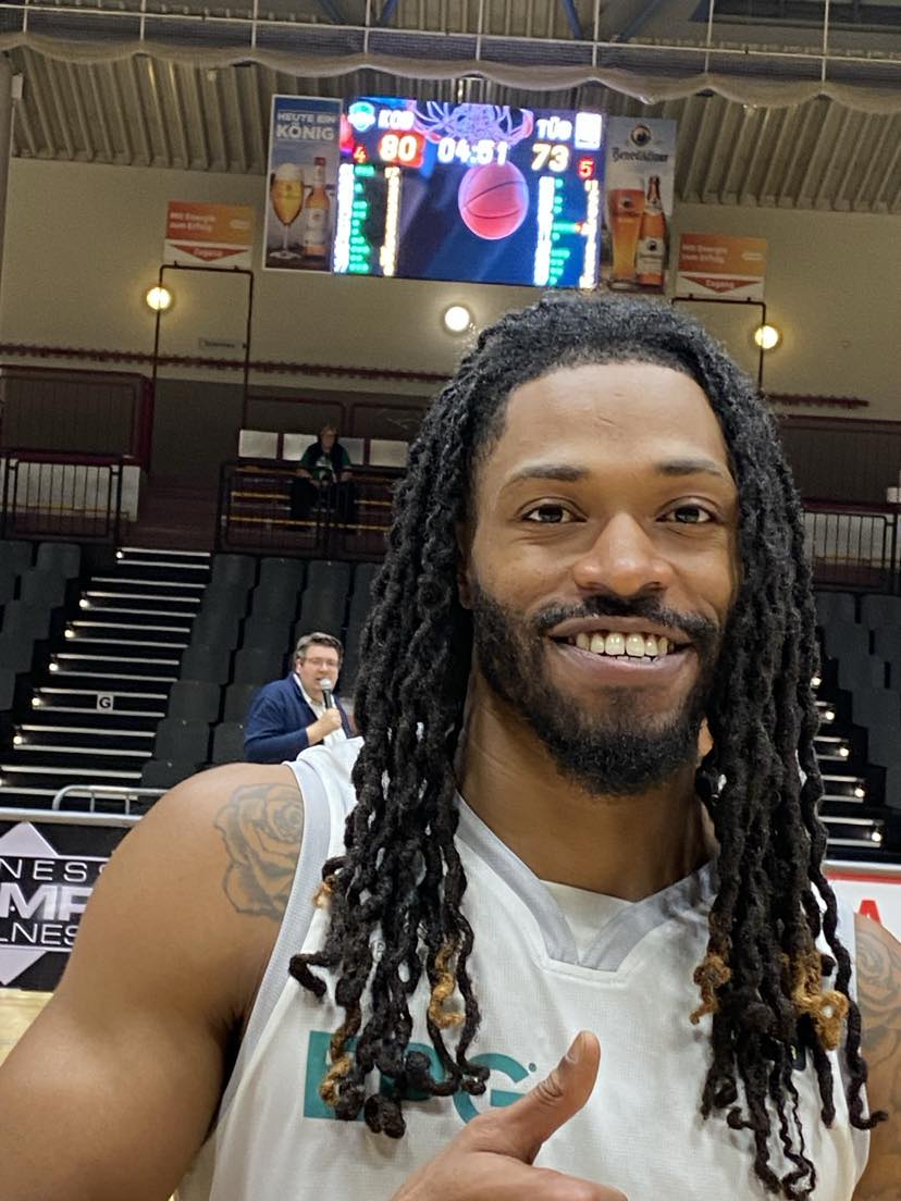 In the second quarter the EPG Guardians kept fighting and took the lead in the last minutes to take the 43-37 lead at half-time. The EPG Guardians began with 2 three´s from Mr Microwave Leon Friederici to trail only 26-24 as Cooper who came into the game shooting 53% from outside also connected from the parking lot. Both teams continued to execute well on offense, but that was actually helping the EPG Guardians more simply because they hadn´t been used to being so consistent on the offensive end this season. Koblenz got a lay in from ex North Kentucky (NCAA) forward David Boehm and trey from Draper while the guests countered with Idowu who had missed some three´s since his game beginning explosions now went for the drive with 2 lay´s as the Tigers led 32-31. Koblenz´s self-confidence continued to grow with every new bucket and that helped them end the second quarter with a lethal 12-5 run to lead 43-37 at the break. In the run, the EPG Guardians were led by young German Adi Eri and Michael Bradley with 2 baskets. “Adi helped us so much. I won´t forget where he scooped down 3 offensive rebounds in a row. Even if it didn´t lead to a basket, it helped us get over the edge with his energy and secure the momentum Michael is my partner in crime. We feed off each other so well and are always locked in. ”, warned Ty Cockfield. The precise three point shooting of Koblenz had their percentage at 55% while the Tigers were also solid at 45%. Both teams had 13 rebounds a piece and Koblenz 9 turnovers and Tuebingen 9 turnovers. “We really flourished with our discipline. We made the right plays and read their defense, not forcing anything, but taking what they gave us”, commented Ty Cockfield.