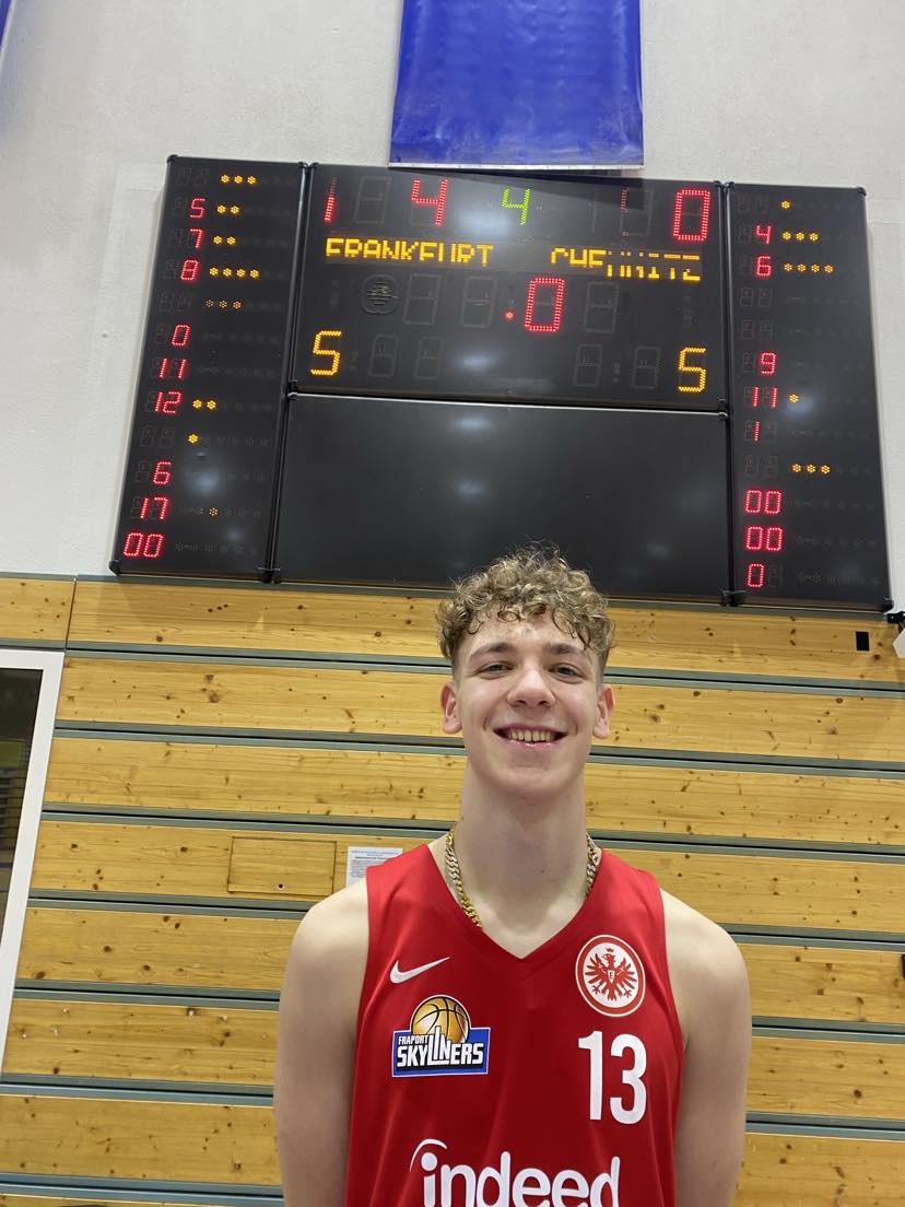 Eintracht Frankfurt Skyliners continue to be on a mission as their winning ways continue as they were sprouting an excellent 6-0 record. They have been successful with good team basketball led by their trio of Crnjac, Omog and Edoka. But they knew that if they wanted to take their unbeaten streak into Christmas, they would have to get by the Niners Chemnitz again. Last weekend, the 2 clubs had met in Chemnitz where Frankfurt escaped with a thrilling 95-93 victory where Ivan Crnjac (203-F-2007) led the charge with 21 points. Despite the Niners Chemnitz having a 3-4 record, Frankfurt couldn´t underestimate them and had to be on their A game to continue their winning streak. Frankfurt was without Namori Omog while Chemnitz was without 3 key players. On a mild Sunday afternoon in Frankfurt, history was made as German shooting star Ivan Crnjac had a perfect game going 12/12 from the field and 3/3 from the free throw powering Eintracht Frankfurt Skyliners past the Niners Chemnitz Academy 114-90. “Ivan was in a little shooting slump, but it was only a phase. He is an outstanding shooter. He has that quick high release and just knows how to shoot”, stressed Skyliners Juniors head coach Sepher Tarrah. But it wasn´t only Crnjac who sparkled, but the whole team came together and had an amazing offensive game shooting out the lights. Frankfurt let up on the defensive end in the second half, but a win is all that matters in the end. “In the first half, we hit everything. It was crazy. It is only normal that a team won´t have as much focus and energy after a first half like that. I still think that we played well. I´m really proud of the team”, stressed Frankfurt forward Ivan Crnjac. Then Niners Chemnitz Academy stepped up their game in the second half outscoring Frankfurt 49-43 and showed real heart never giving up and playing hard until the end. “We let Frankfurt catch their rhythm to quickly at the start. Their quick start decided the game early. That hurt us mentally. We have to come out with more pride and play together more. We played with more pride in the second half. We gave up too many open three´s. We have to do a better job closing out and helping on rotations”, added Niners Chemnitz Academy Academy player Daniel Duhajsky.
