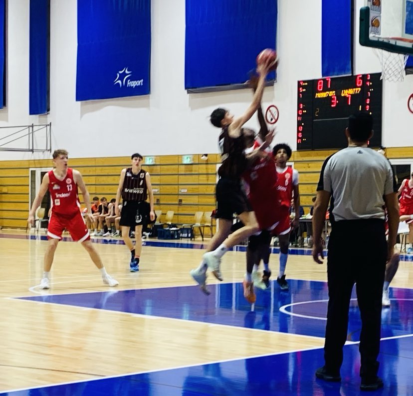 In the first quarter Eintracht Frankfurt Skyliners exploded for an incredible 41 points while Niners Chemnitz Academy Academy mustered only 22 points which would have looked normal in almost any other kind of circumstance. Frankfurt got off to a rapid start leading 7-2 as Ivan Crnjac added 5 points. The Niners Chemnitz Academy stayed tough and tied the game at 7-7 with a bucket from Duhajsky and a trey from Chris Wahren. But Frankfurt were just getting started as they exploded on a 21-6 run to lead very comfortably 28-13. In the run Frankfurt continued to play great team basketball as the duo of Crnjac and Julius Messer added 8 points apiece and 2 three´s a piece. Frankfurt was defending aggressively getting stops which heighted their self confidence for their offensive sets. Frankfurt didn´t let up and continued to execute excellent at both ends of the court. Frankfurt continued to share the ball nicely as Maximillian Peters scored as did Julius Messer and Crnjac added 4 more points. The Frankfurt bench also stepped up as German Finley Pruever made a steal and transition basket. It would have looked a lot worse for Chemnitz, but talented Luca Kellig added 6 points late to give them a bit of energy. “Frankfurt gave a real offensive firework. After a while you had the feeling of not knowing who scored as so many scored. We had great ball movement and the bench stepped up. Many guys on the bench would start for other teams”, stated Fraport Skyliners Juniors head coach Sepehr Tarrah. Eintracht Frankfurt Skyliners shot an overwhelming 85% from the field and 75% from outside and had 5 rebounds and 2 turnovers while The Niners Chemnitz Academy shot 62% from the field and 40% from outside and had 3 rebounds and 5 turnovers.
