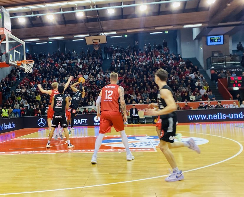 The Giessen 46ers continue to play solid basketball as they came into 2025 riding a 2 game winning streak and had won 5 of the last 7 games. Coming into the new year and getting that first win is always vital and they didn´t catch a better opponent than the Nurnberg Falcons BC as they were 1 place above the cellar spot riding a disappointer 3-12 record. They continue to be up and down as they began the season falling off the wrong side of the bed losing 8 games in a row and then finally found a groove winning 3 of 4 games and now had slipped again riding a 3 game losing streak. On a cold Friday night, fans saw Giessen have control of the first half, but in the second half shifted up a few gears as they won the last 20 minutes 42-22 and thus won easily 93-62. After the contest ex Frankfurt Skyliner Kevin McClain (190-G-1996, college: Belmont) was extremely happy with one aspect of the team´s victory. We executed really well attacking the basket. We attacked from the jump setting the tone well. We made some defensive mistakes at the beginning, but in the second half defended a lot better”, stressed Giessen 46er Kevin McClain. It is no secret that the German Pro A belongs to the top second division leagues in Europe and as a team one has to come to play for 40 minutes as Nurnberg fell apart in the second half. “This was a tough loss for us. We are in a very difficult situation at the moment. We didn´t think that we would play this bad. We played too much 1-1 and didn´t move the ball well. They switched a lot and we didn´t use the mis matches with the bigs. They took apart our zone and we couldn´t hit three´s”, stressed Nurnberg Falcons BC guard Tim Koepple.