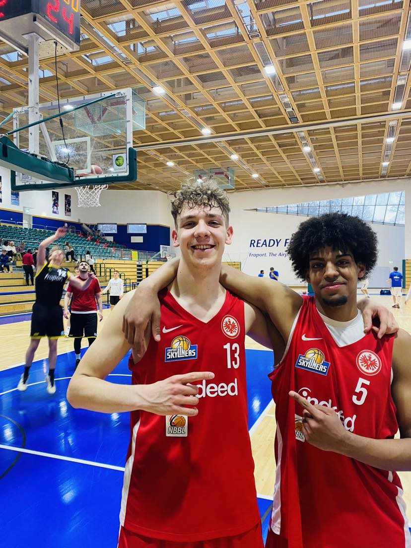 Whenever it starts to get warmer and it´s March, you have March madness in the United States where all the young talented players battle, while in Germany, the youth playoffs also start. Eintracht Frankfurt had a solid season starting 8-0, but lost the season series to FC Bayern Munich and finished the season at 11-3. In the first round of the playoffs, they had a real real tough best of 3 game playoff series with ratiopharm Ulm who had an unbeaten season at 13-0. They are a explosive scoring squad that scored over 100 points 5 times including a 136 points destruction of the Rhein Neckar Metropolitans and never scored less than 82 points in a game. But one had to remember that ratiopharm Ulm played in the B division which had weaker competition. Eintracht Frankfurt had the big 3 of Crnjac, Edoka and Omog and 2 great role players with Maximilian Peters and Julius Messer, but the big question was could they overcome the deeper roster of ratiopharm Ulm who have so much talent that they have 2 starting 5 teams equally as strong. On a mild Sunday afternoon, ratiopharm Ulm came to Frankfurt despite 8 of the 10 NBBL player that played in Frankfurt were coming off an incredible upset win the day before in the Pro B over top team RheinStars, but despite having played 24 hours earlier were ready to compete for 40 minutes, but lost a heartbreaker on a game winner from Ivan Crnjac. This contest truly deserved no loser. One could observe quickly after the game that ratiopharm Ulm head coach Florian Flabb wasn´t overjoyed with losing such a tight game. “Congrats to Frankfurt to the win. We weren´t able to bring the defensive intensity that we wanted. We will try to do better next weekend”, stressed Florian Flabb. Eintracht Frankfurt Skyliners weren´t the favorite on paper, but they played with so much heart and always stuck together during all lows of the game. “We played a good game. This was a classic game of runs. We never hung our heads and always stayed together. The most important thing in this win was that we always gave our best when we needed it most”, stressed Eintracht Frankfurt Skyliners forward Ivan Crnjac. “This was a great youth game. There were many great individual performances and team play. We stuck together until the end”, stressed Eintracht Frankfurt Skyliners head coach Thore Bethke.