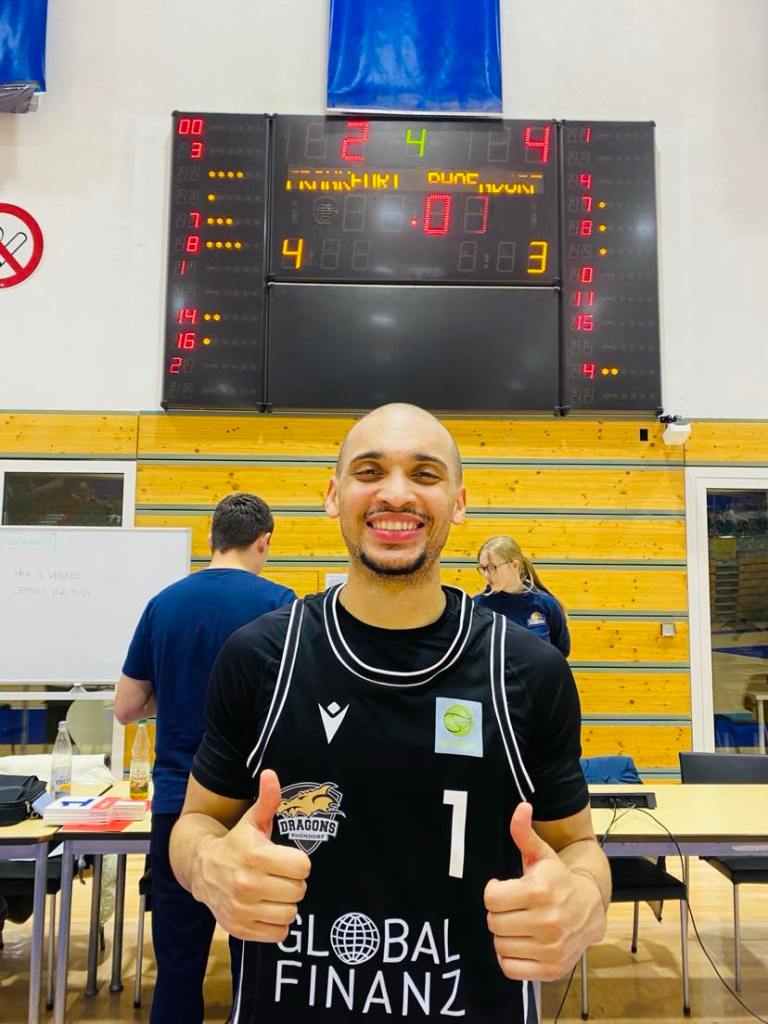 In the first quarter the first five minutes was a close affair as both teams were missing shots, but in the last part of the first quarter, Frankfurt executed better and got stops to secure the 19-14 advantage. Frankfurt got the rapid 6-2 advantage as 17 year old German talent Jamie Edoka made 2 easy baskets with his big strength the drive and ex Hanau guard Felix Hecker hit a 20 footer. Rhondorf also went with the penetration as ex RheinStars guard Kenan Reinhart made a lay in and 2024 U-18 German European Championships guard Janne Lasse Mueller (193-PG-2006) also made 2 lay in´s. Frankfurt then went on a mini 5-0 run as Finish guard Chuko Chukwuma connected on a trey and young German Marvin Esser made a lay in for the 11-6 advantage. The Dragons Rhondorf remained tough going on their own 4-0 run as Lithuanian center Danas Kazakevicius made 2 lay in´s as Frankfurt led only 11-10. Frankfurt didn´t relinquish the lead yet going on a 8-4 run to lead 19-14 after 10 minutes. With sniper Bruno Albrecht still out, Felix Hecker had to take some responsibility and stayed aggressive adding 6 points while nailing 4 free throws and Dusan Nikolic made a lay in. Frankfurt shot 37% from the field and 14% from outside and had 14 rebounds and 2 turnovers while the Dragons Rhondorf shot 37% from the field and 0% from outside and had 10 rebounds and 1 turnover. “They got easy baskets in the first quarter. We were still searching for our rhythm at both ends. We missed easy shots”, stressed Kelvin Omojola