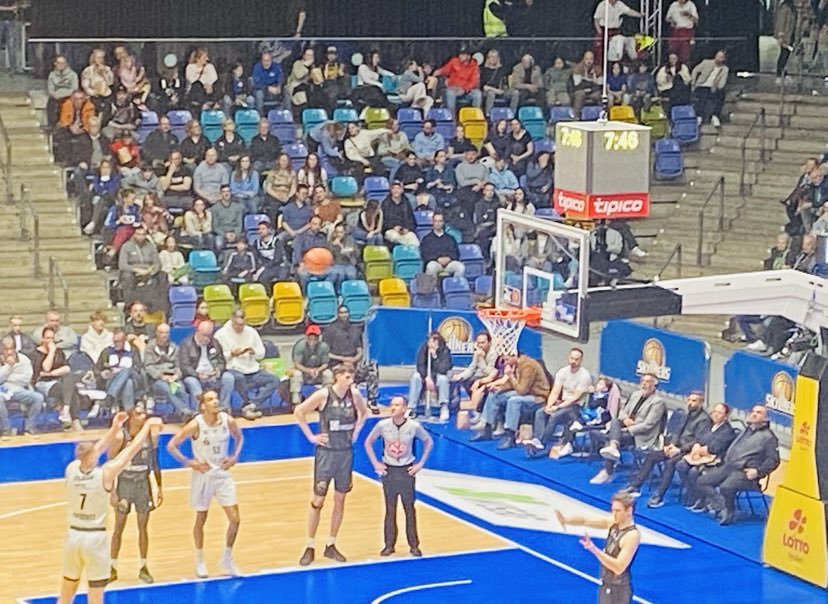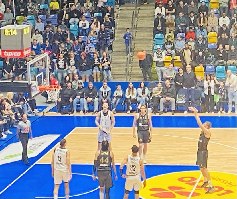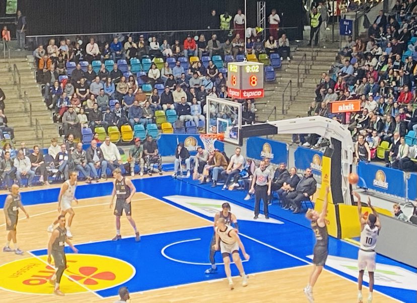 4,760 fans showed up for the basketball clash and saw the Niners Chemnitz race out to a quick 8-2 lead. In the run, the Niners caught Frankfurt off guard as they were not quite awake attacking them as 2024 Pro A champion Victor Bailey Jr produced the first 5 points. German Nicholas Tischler also added 3 points with a tap in and free throw. Frankfurt punched back with a 8-2 run as they banged the ball inside whenever possible which resulted in baskets from ex Schweinningen big man Jacob Knauf and ex Boston College forward Patrick Heckmann. Heckman then displayed an incredible pass as he drove from the right flew under the basket and whipped a bullet pass to ex Bremerhaven guard Garai Zeeb who sunk the trey. German Kevin Yebo then countered with 6 points as he displayed his excellent inside out game with a trey and made free throws after attacking the rim for the 17-10 advantage. Frankfurt was up and down as their rhythm wasn´t fluid yet. American Malik Parsons dropped a trey late and a free throw as the Niners Chemnitz led 17-14 after 10 minutes. “We didn´t have a good first quarter. Our defense dictates our offense so when were aren´t aggressive of defense and aren´t flying around, It carries over to our offense. We didn´t move the ball well”, commented Jeff Garrett. The Niners Chemnitz shot 27% from the field and 13% from outside and had 15 rebounds and 5 turnovers while the Frankfurt Skyliners shot 26% from the field and 20% from outside and had 12 rebounds and 2 turnovers.