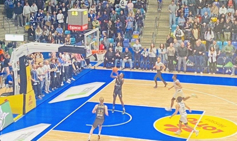 The Frankfurt Skyliners upped their game in the second quarter finally finding their offensive rhythm, but so did the Niners Chemnitz as the contest was deadlocked at 35-35 at the break. Tischler got the Niners their first points of the second quarter with a trey and German Jonas Richter made a lay in for the 21-14 Niners lead. However that didn´t faze Frankfurt as they rattled off back to back three´s from Parsons at the shot clock buzzer and from Zeeb to trail only 21-20. That shooting energy brought the arena back to life. Both teams were executing at ease on offense, but Frankfurt was unable to get over the hump as they got a step back jumper from Parsons and an offensive rebound from Knauf and put back, but Chemnitz always had an answer. Kevin Yebo was a one man wrecking crew as he scored twice always getting inside with his athleticism for the 30-24 advantage. “Kevin is so important for us. He is solid on defense always bring energy, but he is at his best on offense. He is a mismatch nightmare and can do it all for a big man. He is one of the best bigs in the league”, said Jeff Garrett. But the Niners couldn´t get away and add to their lead as Frankfurt always bounced back as ex Euroleague player Jordan Theodore made a lay in as did Parsons to trail 30-28. The Niners then got a lay in from Garrett to lead 32-28. Frankfurt really had a lot of guys ready to produce as now it was time for ex G-League player Marcus Domask as he showed again that he can score in bunches making a lay in and turn around shot for the 33-32 lead. Ex NBA player Jacob Gilyard then added a trey and Knauf free throws as no team could break away from the other. “Frankfurt did a great job executing seeing that we were slow and looked for the direct pass. They got easy baskets and were having fun”, stated Jeff Garrett. The Niners Chemnitz shot 31% from the field and 20% from the three point line and had 23 rebounds and 6 turnovers while the Frankfurt Skyliners shot 36% from the field and 25% from the three point line and had 24 rebounds and 4 turnovers.