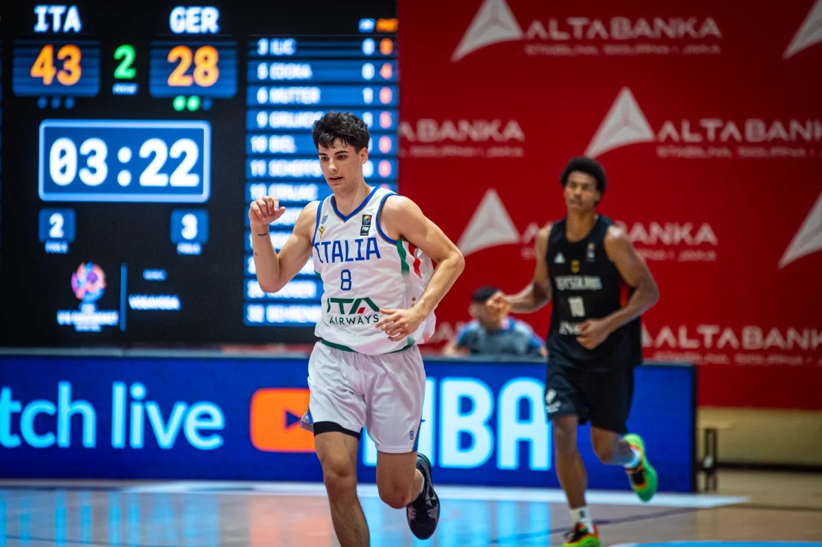 It is always beneficial for a basketball club to come into a tournament with a bang, but for Germany it was more of a belly flop as they lost 85-71 to Italy at the 2025 U-18 European championships. It was an even game in the first quarter, but in the second quarter, the Italian side broke open the game and would never allow Germany to get back over the hump. Italy was powered by their dangerous three point shooting as the dynamic duo of Accorsi and Ceccato combined for 9 of Italy´s 13 three´s. The two big talents shot 9/13 as almost everything they fired at the basket turned to Gold. Germany showed once again that they have become a rebound nation following the strength of the U-19 team at the World cup as they cleaned up under the boards winning the rebound battle 50-31 and dominated the offensive rebounds 22-6. However it was Germany´s poor shooting that broke their necks “Italy gave a dominant display of offensive efficiency. Shot quality and efficiency trumped volume. Italy shot 52.5% from the field and a remarkable 48.2% from three-point range (13/27), compared to Germany’s 31.8% overall FG and just 21.2% from deep. Germany’s offense was heavily dependent on volume shooting—particularly from beyond the arc (33 attempts)—but failed to convert at a sustainable rate. Despite strong efforts from Mathieu Grujicic (23 pts, 9/10 FT) and Fynn Lastring (14 pts), Germany lacked secondary scoring and struggled in half-court execution. Italy, on the other hand, distributed the ball well (20 assists), moved off-ball effectively, and punished closeouts. Matteo Accorsi (21 pts, 5/8 3PT) and Mattia Ceccato (16 pts, 4/5 3PT) anchored a balanced and intelligent Italian attack. Italy’s +20% advantage in shooting efficiency (FG%) and their ability to convert in rhythm—from both drive-and-kick sequences and transition threes—neutralized Germany’s rebounding edge and kept the game firmly in their control after a decisive 31–17 second quarter”, stressed ratiopharm Ulm (U-19) head coach Florian Flab.