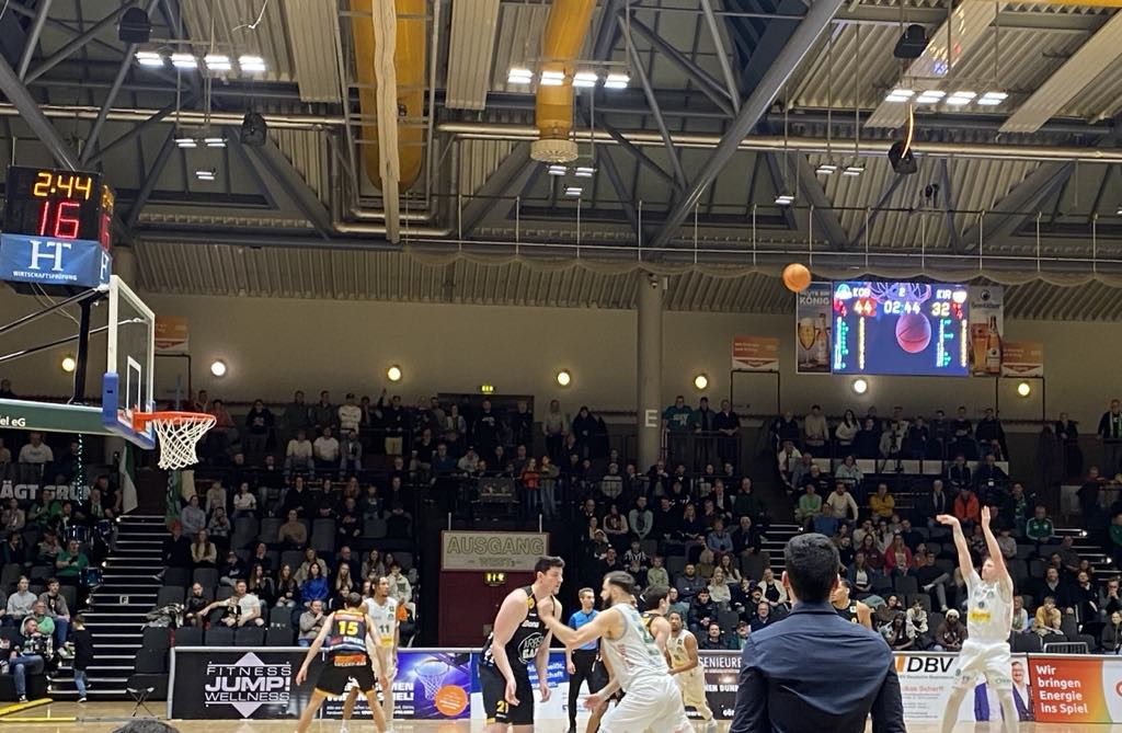 Both clubs had massive difficulty finding an offensive rhythm in the first 3 minutes as both teams were stopped 5 times. Koblenz finally broke the ice as ex Schwenningen guard Badu Buck nailed a trey. Kirchheim also added a basket from unorthodox but efficient American player Nick Spinoso to trail 3-2. Both teams then scored with ease, but Koblenz kept the slim lead with a transition basket from ex G-League player DJ Jeffries who celebrated his 26th birthday while ex Rhondorf forward Tim Smith Jr hit a trey for the 10-8 advantage. Ex Koblenz guard Lucas Mayer stayed aggressive and made 2 buckets on the drive. However Koblenz then celebrated their first big run of the game scoring 13 points while the guests managed only 2 to lead 23-10. Koblenz got spirited play from their guards Garrett Hicks and Calvin Wishart who dropped three´s while their bigs also were efficient as ex Rhondorf German Alex Moeller made a lay in in traffic and ex Oldenburg center Marko Bacak made a pretty bank shot. Koblenz played nice team ball and defensively stayed disciplined and looked for the best shot on offense. Kirchheim got a clutch trey from young German Gian Aydinoglu and a jumper by Harris at the buzzer to trail 28-19 after 10 minutes. “Koblenz was playing a strong game. They had a good balance between offense and defense. The team also played nice inside out basketball and played aggressive on defense. They did have some problems with 1-1 defense”, stressed EPG Baskets Koblenz sport director Thomas Klein.
