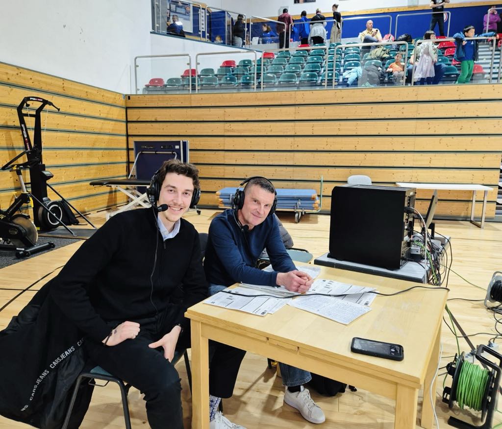 Drago Crnjac doing play by play with Miles Schmidt-Scheuber in Frankfurt