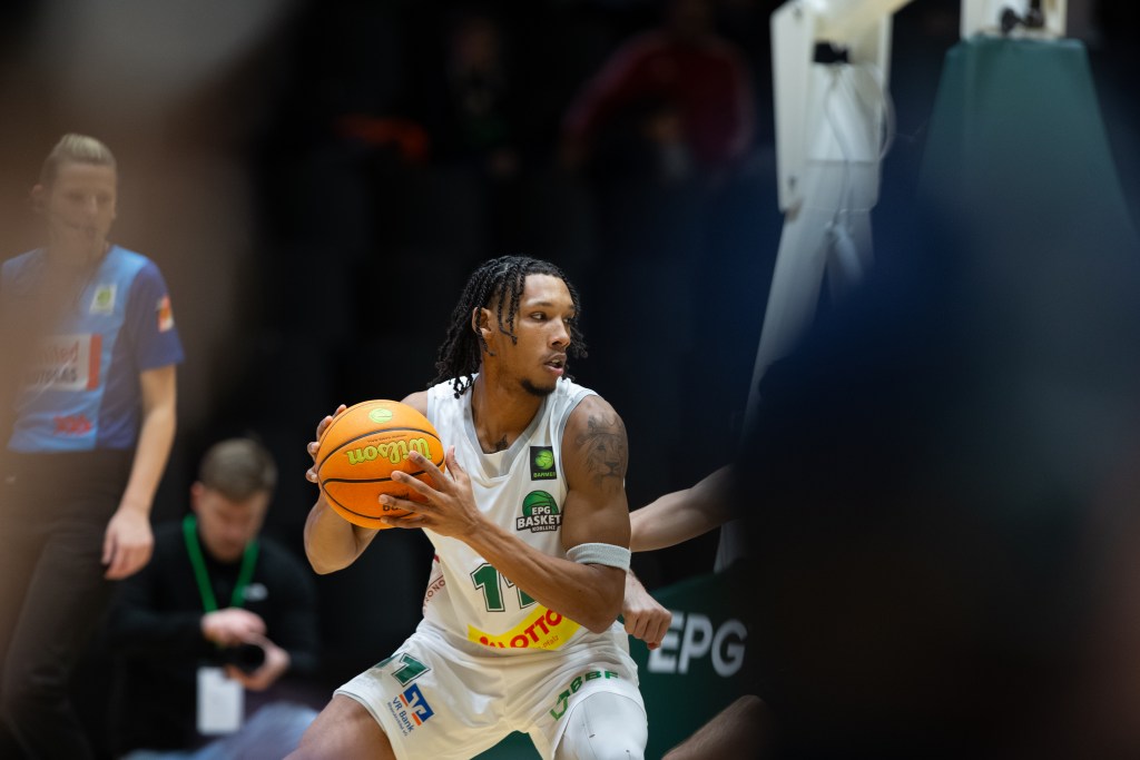 Devonte McCall (198-F-1998, college: Post) is a 27 year old 198 cm forward that was born in Amherst Mass and is playing his fourth professional season and fourth in Germany and first with the EPG Baskets Koblenz. He played his rookie season with the wiha Panthers Schwenningen (Germany-ProA) averaging 12.9ppg, 4.9rpg, 2.0apg, 1.3spg, Blocks-3 (1.2bpg), FGP: 56.7%, 3PT: 32.5%, FT: 68.5%. He played the last 2 seasons with Phoenix Hagen (Germany-ProA) averaging 10.3ppg, 4.1rpg, 1.3apg, FGP: 49.8%, 3PT: 23.5%, FT: 68.5% and 7.9ppg, 2.9rpg, 1.4apg, FGP: 54.9%, 3PT: 24.7%, FT: 70.3%. He began his basketball career at Westminster and then played a season at Franklin Pierce University (NCAA2) averaging 5.0ppg, 3.5rpg, FGP: 53.8%, 3PT: 26.7%, FT: 41.2%. He then moved to Post University (NCAA2) averaging 12.6ppg, 7.9rpg, 1.6apg, 1.5bpg, FGP: 51.9%, 3PT: 35.4%, FT: 50.0% and in his last season averaged 19.3ppg, 7.5rpg, 1.9apg, 1.4spg, 2.1bpg, FGP: 48.0%, 3PT: 37.4%, FT: 66.9%. He spoke to germanhoops.com after the big 96-79 win in Munster to sweep the season series.
