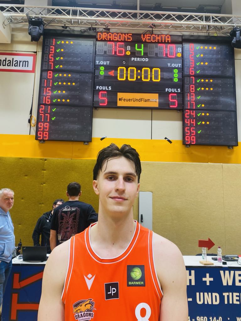 The Slim playoff hopes of the Dragons Rhondorf were still alive with 3 games remaining, but they were 2 wins away from the last spot, but really wanted to secure their place for next season in the Pro B. An untimely 6 game losing streak in 2026 didn´t help their fight, but as of late their 2 game winning streak was definitely refreshing. The Dragons Rhondorf had a must win in their next home game against doormat Vechta 2. The club that helps develop young Germans had had a tough season and came into the game with a 4-18 record and had lost 6 of their last 7 games. However they had some confidence coming into the Dragon´s living room having won their last game at home against the EN Baskets Schwelm. Rasta Vechta played a strong first quarter, but the Dragons Rhondorf took control of the game in the second quarter and never looked back winning 76-70. Rhondorf was led by the potent big man duo of Dujmovic and Sadikovic who combined for 36 points and 25 rebounds. “It was an average game for us. We had good phases where we played aggressive defense and good offense, but also bad phases where we were lost, but all in all, we stayed together in the end and won and that is what was important”, stressed Dragons Rhondorf guard Kenan Reinhart. Rasta Vechta 2 fought the whole game and even cut it down to 7 points in the fourth quarter, but just couldn´t get over the hump. “We had a solid first quarter, but allowed too many offensive rebounds and open shots in the second and third quarters. I´m proud though that we didn´t give up and fought to the end”, stressed Rasta Vechta 2 American AJ Sumbry.