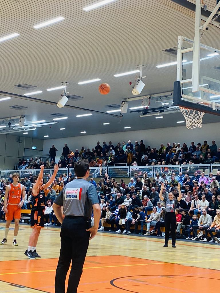 The first quarter had a few runs, but after 10 minutes the Dragons Rhondorf had the slim 22-21 advantage. Rasta Vechta 2 got off to a rapid start leading 8-2. American AJ Sumbry who is playing in his 9th country overseas scored 5 points while 2022 JBBL finalist Roy Krupnikas hit a trey. The ball movement and energy of the guests was on par while Rhondorf was a bit sluggish and still figuring things out. But Rhondorf then got going with a 11-2 run with better spacing and got the pick and roll going as the Spanish magician Jorge Mejias hooked up twice with ex Oberaching big man Benjamin Sadikovic (208-PF-2003) with 2 dunks. Ex Neustadt forward Duje Dujmovic also made a trey and Kenan Reinhart an off balance shot for the 13-10 lead. The guests then found their offensive rhythm and got good support from young Irish center Etinosasere Ehoghae with 2 baskets, but the Dragons Rhondorf punched back with a Reinhart trey and Dujmovic basket to tie the game at 18-18. Rhondorf continued to attack the rim with a Dusan Ilic lay in and Dujmovic scored on transition as Mejias fed him his fourth assist of the game. “We couldn´t crack Vechta´s pick and roll defense in the first minutes, but then got on track with Mejias and Sadikovic. We then concentrated more on our defense”, stated Kenan Reinhart. The Dragons Rhondorf shot 47% from the field and 33% from outside and had 10 rebounds and 2 turnovers while Rasta Vechta 2 shot 44% from the field and 25% from outside and had 11 rebounds and 4 turnovers.