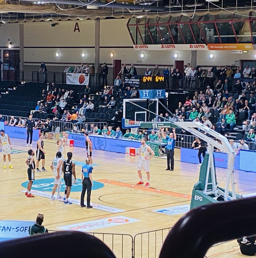 893 fans arrived in the CGM arena on a mild Monday night to witness a horrible start by the EPG Baskets who quickly fell deep in the hole trailing 10-0 after a few minutes. Paderborn attacked the rim 4 times and got easy baskets by Klussmann twice, once by Tennessee native Grant Teichmann and from German youth national player Leonard Kroeger. Koblenz had zero energy and was exhibiting horrible 1-1 defense. However Koblenz finally found their groove after a time out at the 7, 20 minute mark and proved again that basketball will always be a game of runs as they punched back with a 12-4 run to trail only 14-12. Koblenz finally found their aggressiveness attacking the rim better as Minnesota native Calvin Wishart made free throws, Sonnefeld made a lay in as did ex Bonn center Alex Moeller and DJ Jeffries scored twice with his bread and butter mid distance shot. “Jeffries was so important in that come back. He did a great job. I like when he is aggressive. When he is aggressive, we automatically play better warned EPG Basket Koblenz guard Aleksa Kovacevic. Koblenz upped their defensive pressure and aggressiveness forcing a few turnovers as Paderborn couldn´t get into the zone as easily anymore. Paderborn got some vital support from ex UC Irvine (NCAA) guard Eyassu Worku who added 4 points. Jeffries remained consistent and hot nailing a trey to dead lock the game at 18-18, but Klussmann continued to find his spots making a shot to give Paderborn the 20-18 lead after 10 minutes. “We had a slow start. I saw some nervousness in us. But once we found our flow, we got into the game well. We upped our defense and communicated better and got stops”, said Aleksa Kovacevic. The Paderborn Baskets shot 45% from the 2 point range and 33% from outside and had 9 rebounds and 5 turnovers while the EPG Baskets Koblenz shot 50% from the 2 point range and 25% from outside and had 5 rebounds and 3 turnovers.