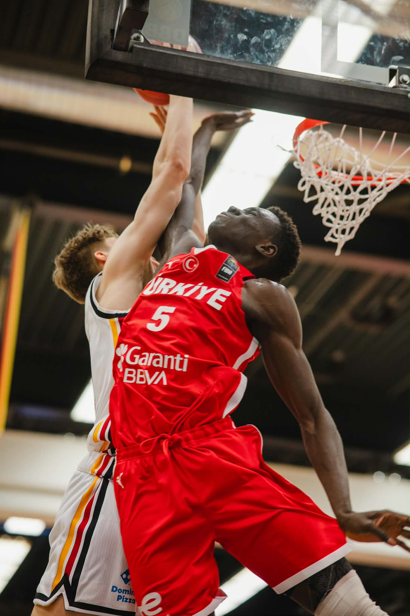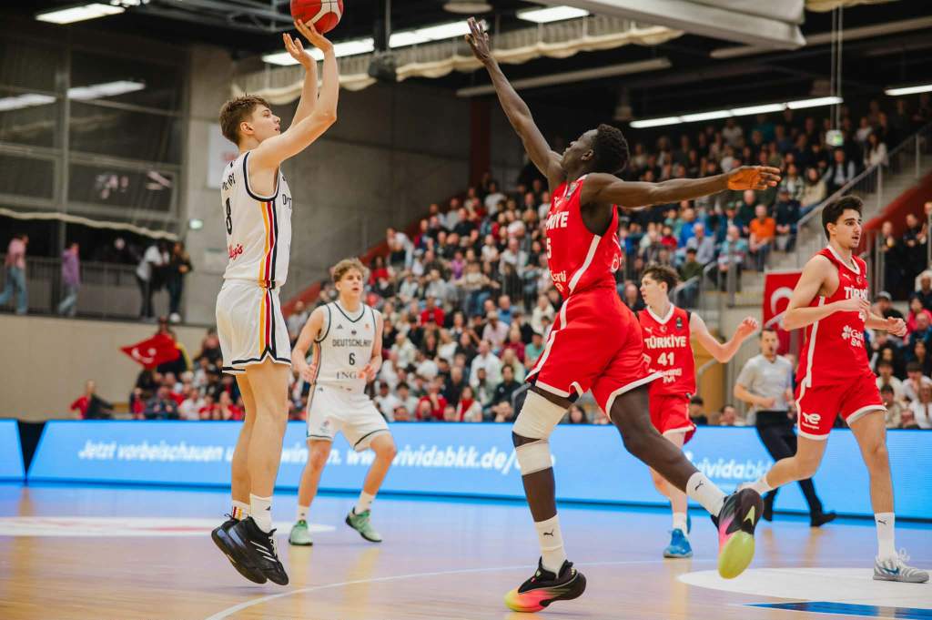 Germany played Bahrain first and used it as a warm up destroying the Asian team 116-59. Germany totally controlled the boards 55-31 and had 6 players score in double figures led by Lucai Anderson with 16 points. “Having a weaker opponent like Bahrain was good for our self-confidence. We were able to see how well we could play with each other. We were able to gain experience and play freely”, stated Anton Kemmer. Jamie Edoka had a solid first game scoring 11 points and filled the stat sheet and was on his way to becoming one of the best players in the tournament. “Jamie has this special power to the rim with his drive. He also has good shooting qualities. He has such good athleticism that teams couldn´t defend him”, remembered Anton Kemmer. Germany next faced Slovenia and had their toughest challenge of the tournament. Germany started slow and had to play catch up basketball for most of the game. Germany picked up the intensity in the fourth quarter at both ends and won it with the masterful game winner by Jamie Edoka. “We learned in that game was that we have to keep playing no matter the circumstances. We showed in that game that if we keep up the pace then they will get tired and miss shots.We1took the momentum then and turned the game around and always stuck together”, said Anton Kemmer. Edoka closed out the game with a pretty step back jumper on the baseline where the basketball God let it bounce around on rim and back board before finally rolling in. “We wanted someone to take the last shot closer to the rim. It felt like 5 seconds when the ball bounced around on the rim. It felt like 5 minutes before the ball went in. I was watching from the bench. When it went in we all went crazy”, stressed Anton Kemmer. Germany controlled the boards again 41-33 with 16 offensive rebounds and had 4 guys score in double figures. Lucai Anderson was top scorer with 16 points and nailed big three´s when Germany needed it in their come back. Caspar Vossenberg added 13 points and was one of those silent hero´s during the tournament stepping up in so many ways. “Caspar showed how good of a driver and scorer was and had great athleticism. His play always gave us energy and we relied on him producing”, stated Anton Kemmer. Germany next faced Turkey where many Turkish fans showed up adding to a beautiful atmosphere. Germany was in control in the first half, but had a horrible third quarter being outscored 24-4, but retreated in the fourth quarter demonstrating that they can flip the switch at any time exploding for 29 points and winning easily 95-80. “That was a really cool game. I had the most highlight in that game including some cool dunks with one flying through the zone. The game was similar to the first Slovenia game with the only difference that we made them tired a lot earlier”, said Anton Kemmer. Germany once again dominated the boards 44-26 and offensive rebounds 20-8 and shot a potent 46% from outside. Germany was led by Lucai Anderson with 26 points and had 4 players in double figures. Fin Borczwanoski had a solid game of 113 points, but was in the shadow of Lucai Anderson´s brilliant scoring game. “ Fin has a cool head. He had good drives and hit big shots. He was always aggressive and made big plays”, commented Anton Kemmer.