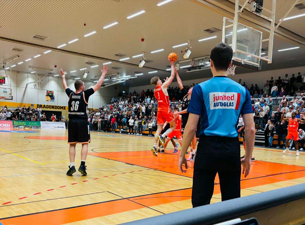 It was high noon in the Dragon Dome as the Dragons Rhondorf had their season on the line. The stage was a do or die game to save the season against top Pro B team Orange Academy. The Dragons Rhondorf had no chance in game one on the road as they were destroyed 102-73. Orange Academy had better shooting percentages and totally crushed the Dragons on the boards 60-42. The Dragons had to find a way to tie the series in their own living room. It was all about playing for pride and showing that heart that in certain difficult moments can do wonders for a team. Orange Academy had the youngest team in the league at age 18 and had an incredible team chemistry built by head coach Florian Flabb who had instilled a special defensive discipline not often seen with young kids that the Dragons needed to halt to force a new do or die game 48 hours later. However after an incredible fight for 40 minutes where 4 Dragon players had 4 fouls in the fourth quarter, Rhondorf was unable to force a game 3 losing 78-74 thus ending their season. It was the Milicic family of Teo and Zoran that scored 11 of the last 15 Orange Academy points propelling them to the next round against Porsche BBA Ludwigsburg. “This wasn´t an easy game for us. The Dragons made adjustments from the first game and played well. I´m very happy that we stuck together as a team. I give a lot of credit to my brother Zoran who turned the game around at the end”, stressed Orange Academy guard Teo Milicic (180-PG-2008). The Dragons Rhondorf played with a lot of heart until the end, but just couldn´t execute better at both ends in crunch-time suffering the season ending loss. “We played a heck of a game. We fought until the end and left it all on the court. We had some unlucky turnovers at the end and some boards and calls didn´t go our way. But that is how basketball can be like”, stressed Dragons Rhondorf guard Juhwan Harris-Dyson.