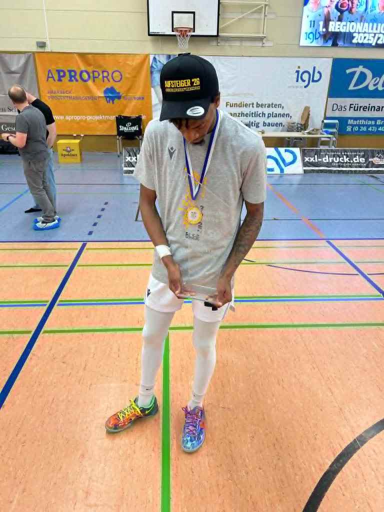 D’Monte Brown (193-G-2000, college: Langston) (193-G-2000, college: Langston) is a 193cm guard from Petersburg, Virginia who played his second season overseas with Culture City Weimar move up to the Pro B. He played his rookie season overseas with the BG Aschersleben Tigers (Germany-Regionalliga) averaging 24,6ppg, 11,2rpg, 3,8apg, 2,9spg and 1,0bpg. He began his basketball career at Petersburg High School. He then played at 3 schools starting with Garrett College (JUCO) averaging 13.5ppg, 6.4rpg, 2.2apg, 1.3spg, FGP: 46.9%, 3PT: 33.3%, FT: 90.2% and 20.6ppg, 8.3rpg, 3.5apg, 1.6spg, FGP: 57.4%, 3PT: 36.1%, FT: 80.9%. He then played a season at Miami Dade College (JUCO) averaging 16.2ppg, 6.4rpg, 1.6apg, 1.3spg, FGP: 53.6%, 3PT: 34.5%, FT: 82.7% and then played 2 years at Langston University, OK (NAIIA) averaging 11.5ppg, 6.0rpg, FGP: 60.4%, 3PT: 38.8%, FT: 74.0% and 9.8ppg, 5.4rpg, FGP: 60.9%, 3PT: 38.8%, FT: 75.0%. He spoke to germanhoops.com about basketball.