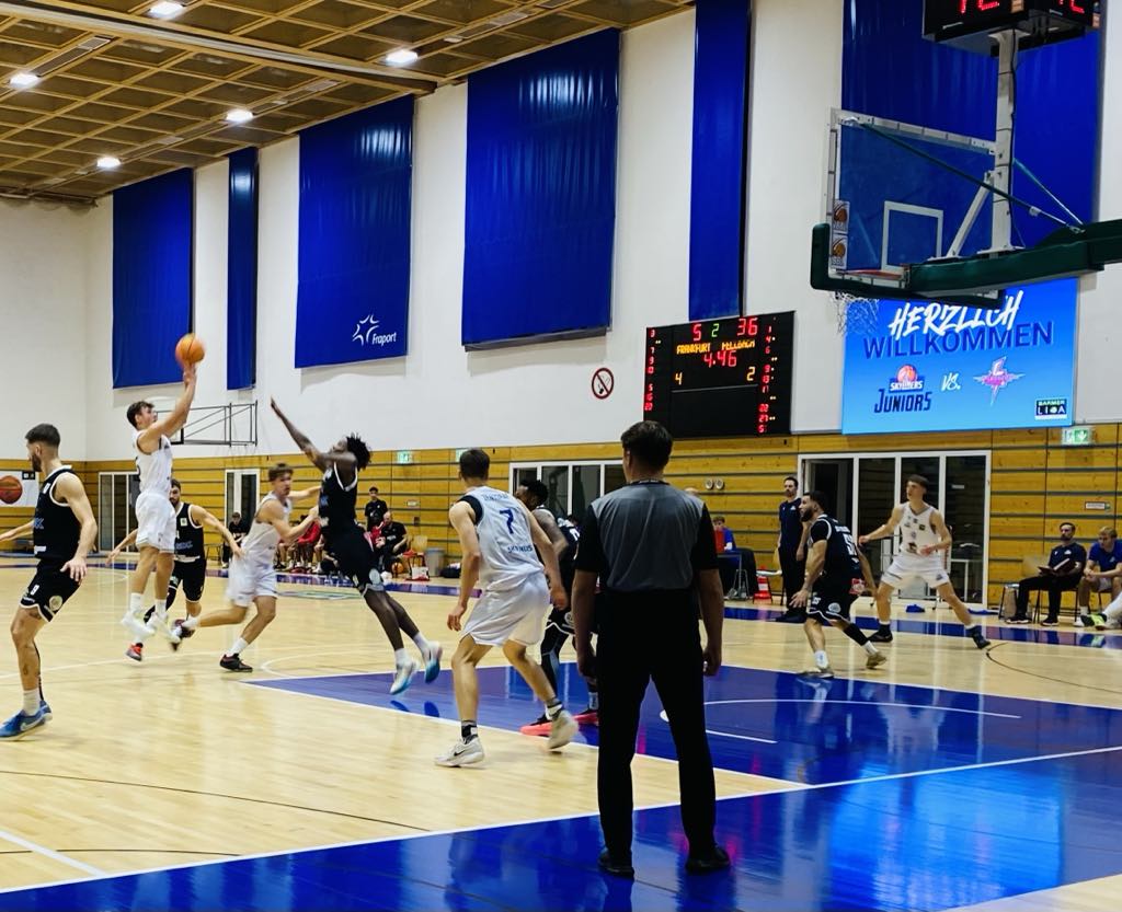 After a long summer, the Skyliners Juniors were back home again for the start of the 2025-206 Pro B season. They had begun the season on the road in Leitershofen and suffered a tough 90-79 loss. Frankfurt was battling sicknesses and injuries and had to play with a 7 man rotation. Their next opponent were the Fellbach Flashers who won the Pro B title in 2023 and have played 2 solid seasons in the Pro B. Fellbach may have been without ex easyCredit BBL slam dunk contest winner Brian Butler who doesn´t play all games, but were with Kris Borisov´s biggest catch of his coaching career with Joanic Gruettner who had just been reeled in. He played 5 seasons in the BBL with BG Goettingen, Bayreuth and Bamberg and was a major attraction for the Pro B. He did score 13 points, but the big attraction was rising Pro B player Nik Schlipf (196-G-2002, college: Alliance) who led the Flashers to the 84-83 win scoring 23 points. It wasn´t a beautiful game, but games like these can always occur at the start of a season. “It was an ugly win. The important thing was that we always stayed together when it mattered most. We kept encouraging each other through every slump in the game. We didn´t shoot well, but kept attacking the paint. We were aggressive minded the whole game and moved the ball well”, stressed Fellbach Flasher Tysem Lyles. The Skyliners Juniors had a lot deeper roster than in Leitershofen, but believed in a 9 man rotation despite being without youngsters Ivan Crnjac, Max Peters and Dusan Nikolic. The Skyliners Juniors fought until the end and had a lot of misfortune at the end, but they should have won the game in other areas. “We made a lot of mistakes and allowed too many fast break points in the first half. It wasn´t our best defensive game. We did a good job on the offensive glass. You don´t see that all the time”, stressed Skyliner Junior Marvin Esser.